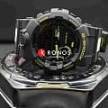 Стильный аксессуар в сдержанном исполнении и яркими жёлтыми деталями сразу завоевал признание аудитории благодаря необычной особенности в виде светоотражающей нашивки на чёрном полимерном ремешке. Это обеспечивает дополнительную безопасность для спортсменов и велосипедистов, занимающихся активной деятельностью в тёмное время суток. Японский кварцевый механизм с высокой точностью хода. Противоударный корпусУдаропрочный корпусМеханизм заключён в корпус, выполненный из современных материалов, устойчивых к ударам, механическим повреждениям и падению с высоты: инновационный пластик, карбон, нержавеющая сталь, титан. из прочного пластика. Минеральное стекло. Технология Bluetooth 4.0BluetoothСовременная технология, позволяющая синхронизировать часы с телефоном и переносить данные. Часы с Bluetooth расширяют возможности вашего смартфона и делают его использование ещё более удобным., таймер, секундомер, сохраняющий в памяти до 200 результатов, таймер с автоповтором, мировое времяМировое время Полезное часовое усложнение, отображающее время в основных городах и известных областях по всему миру, оно связано с часовыми поясами, удобно для путешественников и бизнесменов. , будильник. Светодиодная подсветкаСветодиодная подсветкаСветодиодная или LED-подсветка обеспечивает появление яркого холодного свечения за счёт LED-элементов - маленьких лампочек. Они потребляют минимальное количество энергии, чаще всего можно встретить 1 светодиод, в нижней части циферблата. циферблата, люминесцентное покрытиеЛюминесцентное покрытиеПозволяет считывать показания времени в темноте. Производители наносят на стрелки, часовые индексы, безель или поверхность циферблата светонакопительный состав, дающий холодное свечение. стрелок. Габариты: 54,1 x 48,6 x 16,5 мм.