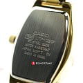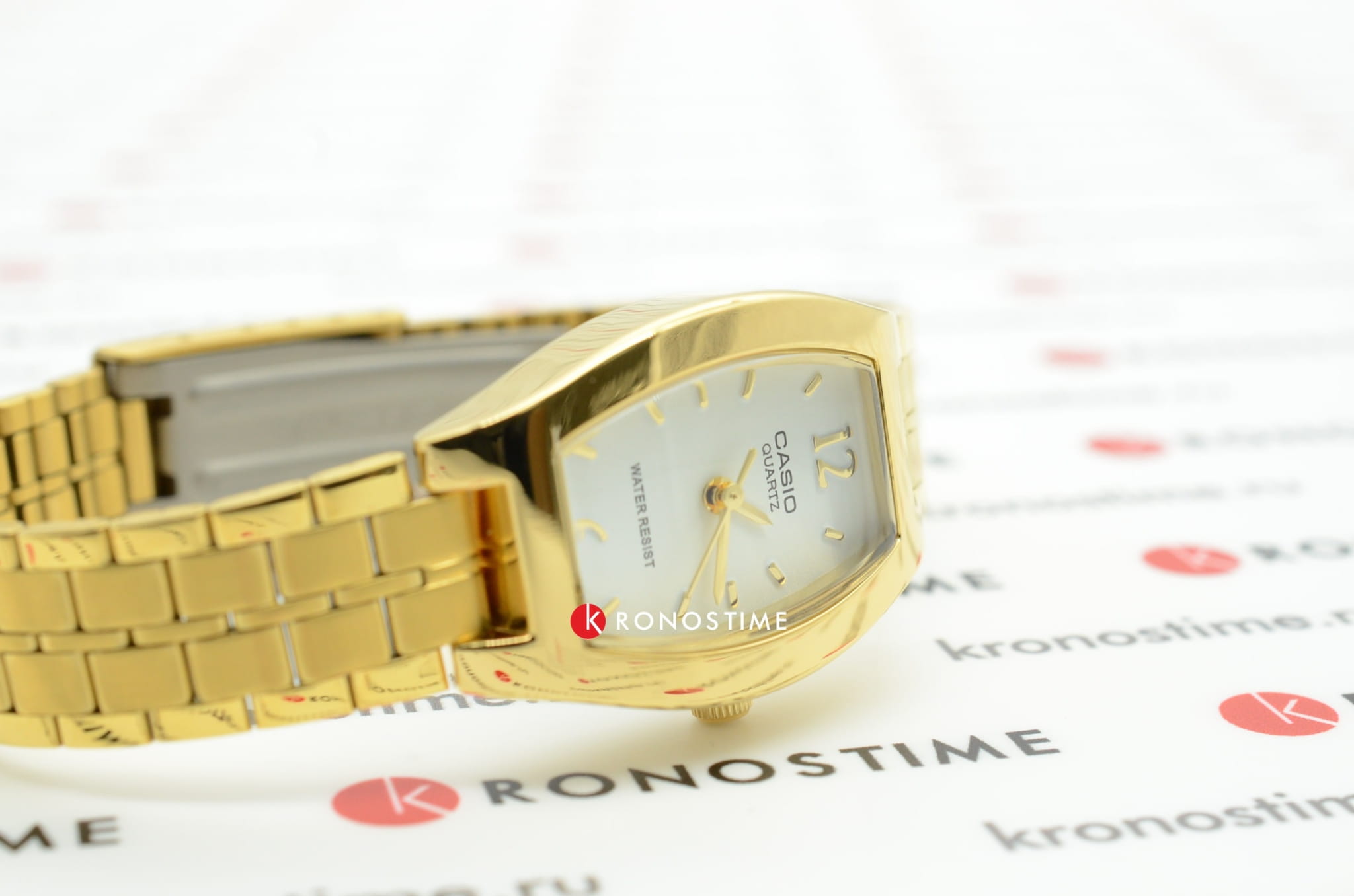 Модель от Casio выполнена в классическом стиле и призвана придавать эффектности и шарма своей обладательнице. Выпуклый по бокам корпус часов сделан из латуни. Яркий, золотой браслет с раскладывающейся застежкой сделан из нержавеющей стали с IP-покрытиемIP-покрытиеМетод ионного напыления. Демонстрирует повышенную устойчивость к истиранию, окислению и химическим веществам. Под воздействием высокого давления и температуры около 1500°C молекулы металла надёжно соединяются с частицами корпуса часов.. На белом циферблате аккуратно расположены штрихи и арабские цифры. Часы защищены от повреждений минеральным стеклом. Все детали прочно соединены между собой в единое целое. Кварцевые часы работают от батарейки. Вес аксессуара равен 48 граммам.