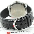 Аксессуар в классическом стиле будет актуален для любого события. Минималистичный чёрный циферблат дополнен контрастными крупными стрелками и часовыми метками, что обеспечивает идеальную читаемость экрана. Надёжный корпус выполнен из гипоаллергенной латуни. Высокоточный кварцевый механизм. Чёрный ремешок из натуральной кожи. Водонепроницаемость 50 WR. Минеральное стекло препятствует образованию царапин. Люминесцентная подсветкаЛюминесцентное покрытиеПозволяет считывать показания времени в темноте. Производители наносят на стрелки, часовые индексы, безель или поверхность циферблата светонакопительный состав, дающий холодное свечение.. Апертура даты. Габариты: 48,9 x 43,5 x 9,2 мм.