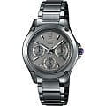 Стильные японские женские часы с календарем. Корпус и браслет выполнены из нержавеющей стали серого цвета. Водозащита 50м. Циферблат украшен кристаллами Swarovski.