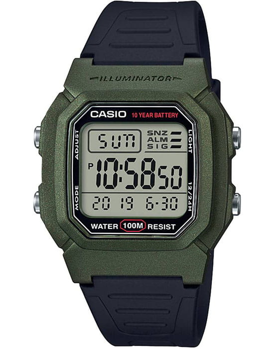 Японские мужские часы Casio Collection W-800HM-3AVEF из коллекции Casio Illuminator станут подходящим аксессуаром для спорта и повседневной жизни.