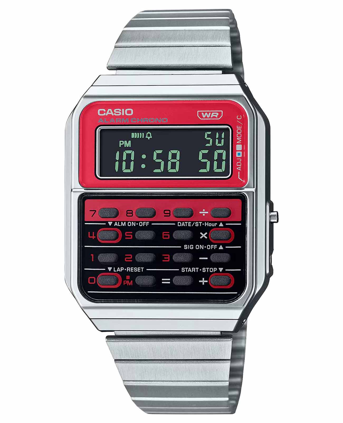 Японские унисекс часы с хронографом Casio Vintage CA-500WE-4B, кварцевый механизм с высокой точностью. Корпус часов изготовлен из пластика, серебристого цвета. Светодиодная подсветкаСветодиодная подсветкаСветодиодная или LED-подсветка обеспечивает появление яркого холодного свечения за счёт LED-элементов - маленьких лампочек. Они потребляют минимальное количество энергии, чаще всего можно встретить 1 светодиод, в нижней части циферблата., секундомерСекундомерСекундоме́р — прибор, способный измерять интервалы времени с точностью до долей секунды. с точностью измерений 1/100 сек., общее время измерений 24 часа. Будильник с функцией Snooze. Автоматический календарь. 8-ми разрядный калькулятор. Класс водозащиты: 30 метров, позволит защитить корпус от случайных брызг или капель дождя. Браслет из стали с IP-покрытиемIP-покрытиеМетод ионного напыления. Демонстрирует повышенную устойчивость к истиранию, окислению и химическим веществам. Под воздействием высокого давления и температуры около 1500°C молекулы металла надёжно соединяются с частицами корпуса часов. на раскладной застёжкеРаскладная застёжкаТакой тип застёжки используется только на браслетах из металла. Она никогда не раскрывается полностью, происходит разделение на 2 и более частей. Раскладывающая застёжка снизит вероятность потери часов к минимуму.. Калькулятор позволяет производить различные математические вычисления, используя числа, содержащие до 8 знаков.