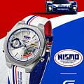 Японские мужские наручные часы Casio Edifice ECB-S10NIS-7A — это высокотехнологичный аксессуар для тех, кто ценит точность, стиль и современные инновации. Модель создана совместно с компанией Nismo, которая занимается автотюнингом и представляет интересы компании Nissan в автоспорте. Модель из коллекции Edifice, оснащённая технологией Bluetooth®, объединяет в себе классический дизайн и цифровые функции, делая каждое использование по-настоящему удобным. Корпус диаметром 43 мм выполнен из прочной нержавеющей стали , что придаёт модели благородства и долговечности. Циферблат серебристого цвета изготовлен по технологии Sunray (солнечные лучи), обеспечивая глубину и игру света. Защиту механизму обеспечивает сапфировое стеклоСапфировое стеклоПрочный и надёжный материал из кристалла сапфира синтетического происхождения, характеризующийся особой твёрдостью и устойчивостью к царапинам и повреждениям., устойчивое к царапинам и с антибликовым покрытием для лучшей читаемости. Часы работают на кварцевом механизме с поддержкой BluetoothBluetoothСовременная технология, позволяющая синхронизировать часы с телефоном и переносить данные. Часы с Bluetooth расширяют возможности вашего смартфона и делают его использование ещё более удобным.. Это даёт возможность автоматически корректировать время, устанавливать будильники, отслеживать дни недели на 6 языках , включая русский. Модель предлагает широкий набор функций: — Секундомер с точностью 1/100 секунды и временем измерения до 24 часов ; — SPLIT-хронографСплит-хронографИспользуется для измерения продолжительности нескольких временных отрезков, начинающихся одновременно, а заканчивающихся в разное время.; — ТаймерТаймерОтсчитывает секунды в обратном направлении в заданном интервале времени. обратного отсчёта от 1 секунды до 24 часов ; — 5 независимых будильников и ежечасный сигнал ; — отображение времени в формате 12/24 часа ; — автоматический календарь с возможностью отображения дня недели до 2099 года. Для комфортного использования в темное время стрелки покрыты люминесцентным составом. Часы также имеют светодиодную подсветкуСветодиодная подсветкаСветодиодная или LED-подсветка обеспечивает появление яркого холодного свечения за счёт LED-элементов - маленьких лампочек. Они потребляют минимальное количество энергии, чаще всего можно встретить 1 светодиод, в нижней части циферблата. циферблата, что делает их особенно удобными в условиях слабого освещения. Часы обладают водозащитой WR100 , подходят для повседневного ношения и плавания без акваланга. Толщина корпуса составляет всего 9.6 мм, благодаря чему часы легко помещаются под манжетом рубашки и не вызывают дискомфорта при носке. Завершает образ кожаный ремень со стандартной застежкой, обеспечивающий надежную фиксацию и комфортную посадку на запястье. Батарейка рассчитана на 2 года автономной работы , а вес модели составляет 69 грамм . Эта модель — идеальный выбор для тех, кто ценит современные технологии , классический стиль и точность японского качества . Casio Edifice — не просто хронограф, а полноценный спутник в деловой и повседневной жизни.