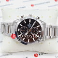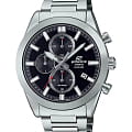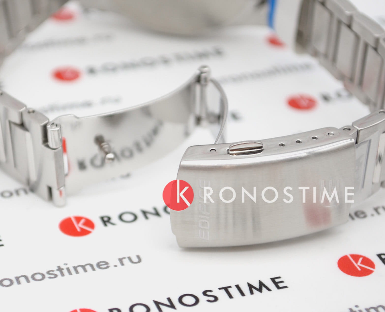 Мужские часы-хронографХронографФункция позволяет измерять отрезки времени с особой точностью: часы, минуты, секунды. Верным признаком хронографа является наличие на циферблате 3 дополнительных окошек-счётчиков.  Casio Edifice EFB-710D-1A, кварцевый механизм с высокой точностью. Минеральное стеклоМинеральное стеклоМинеральное стекло представляет собой искусственно выращенный минерал кварца. Такое стекло отличается особой устойчивостью к повреждениям и царапинам. Уступает по некоторым качествам сапфировому стеклу. устойчивое к появлению царапин, обладающее высокой прозрачностью. СекундомерСекундомерСекундоме́р — прибор, способный измерять интервалы времени с точностью до долей секунды. с точностью показаний 1/10с и временем измерения 1ч. Корпус изготовлен из нержавеющей стали. Стрелки и метки с люминесцентным покрытиемЛюминесцентное покрытиеПозволяет считывать показания времени в темноте. Производители наносят на стрелки, часовые индексы, безель или поверхность циферблата светонакопительный состав, дающий холодное свечение.. На циферблате находится три дополнительных  индикатора. Окошко даты находится в положении 4 часов. Класс водозащиты: 100 метров, позволит плавать, нырять и заниматься другими водными видами спорта. Заводная головка с защитой. Стальной браслет на раскладной застёжкеРаскладная застёжкаТакой тип застёжки используется только на браслетах из металла. Она никогда не раскрывается полностью, происходит разделение на 2 и более частей. Раскладывающая застёжка снизит вероятность потери часов к минимуму..