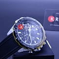 Модель отличается динамичным дизайном с уклоном в автомобильную стилистику, поклонники спортивного стиля по достоинству оценят аксессуар. Односторонне вращающийся безельБезельВнешний ободок, закрепляющий стекло. В спортивных часах так называется поворотное кольцо с делениями на циферблате, выполняет роль таймера – замеряет отрезки времени на шкале. Неподвижный безель – элемент декора. Однонаправленно вращающийся безель на дайверских часах позволяет фиксировать моменты погружения и выныривания на поверхность. имеет цветное IP-покрытиеIP-покрытиеМетод ионного напыления. Демонстрирует повышенную устойчивость к истиранию, окислению и химическим веществам. Под воздействием высокого давления и температуры около 1500°C молекулы металла надёжно соединяются с частицами корпуса часов., дополнительно защищающее от царапин. Кварцевый механизм с точностью хода +/- 20 секунд в месяц. Срок службы батарейки - 3 года. Заводная головка с защитой. Закручивающаяся задняя крышка. Водонепроницаемость 100 метров. Противоударный корпусУдаропрочный корпусМеханизм заключён в корпус, выполненный из современных материалов, устойчивых к ударам, механическим повреждениям и падению с высоты: инновационный пластик, карбон, нержавеющая сталь, титан. из нержавеющей стали 316L. Полимерный ремешок. Минеральное стекло, устойчивое к царапинам. Подсветка NeobriteПодсветка NeobriteИспользование светонакопительных составов на основе сульфида цинка или алюмината стронция, яркий свет можно наблюдать на протяжении 6-10 часов после «зарядки» часов около источника света.. Секундомер, хронографХронографФункция позволяет измерять отрезки времени с особой точностью: часы, минуты, секунды. Верным признаком хронографа является наличие на циферблате 3 дополнительных окошек-счётчиков., индикация числа. Габариты: 49,3 x 43,2 x 11,7 мм.