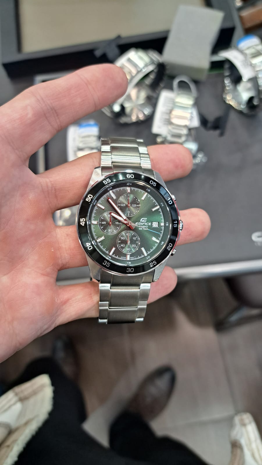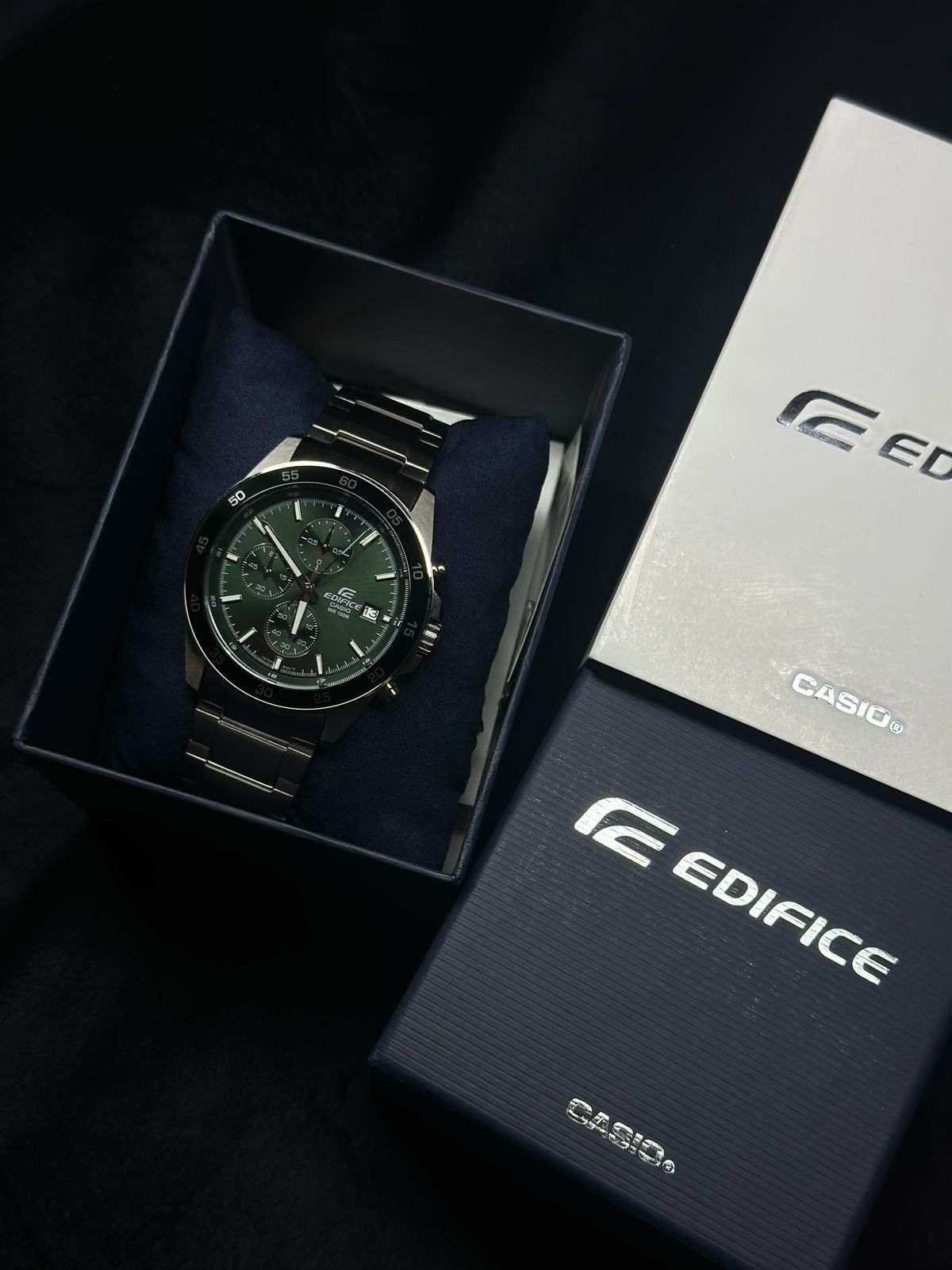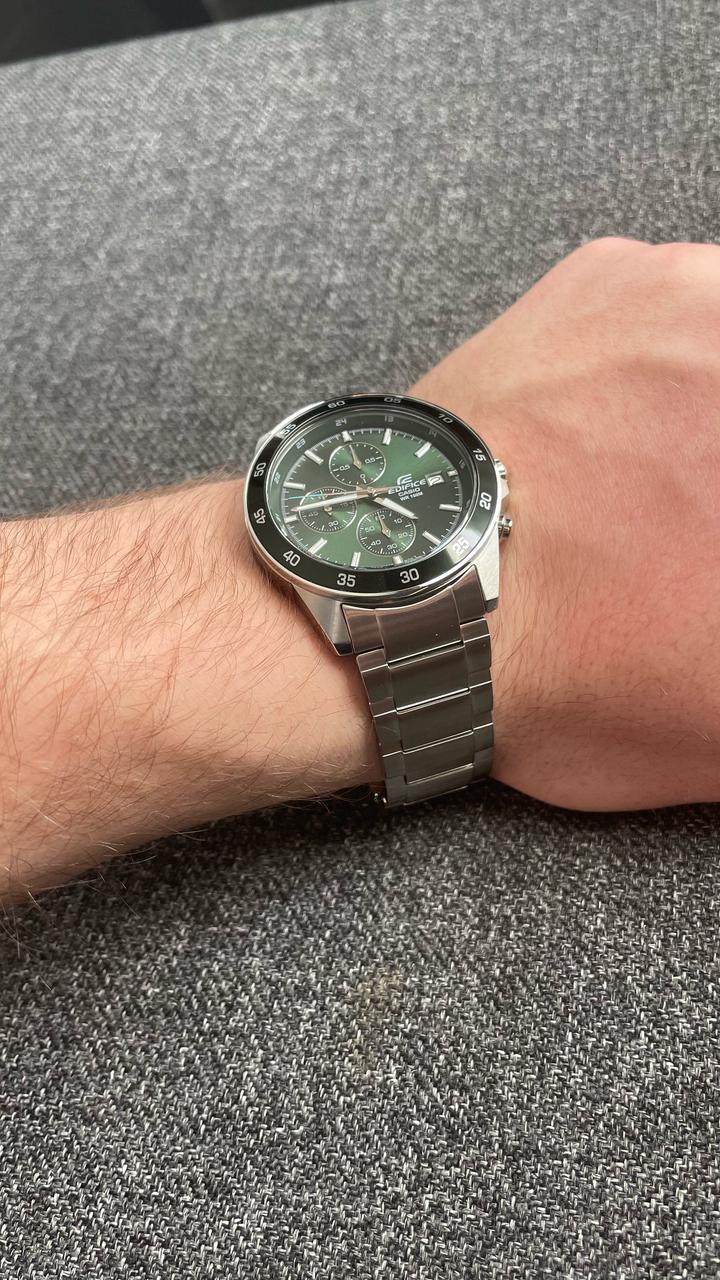 Подчеркните свой стиль с помощью классического хронографаХронографФункция позволяет измерять отрезки времени с особой точностью: часы, минуты, секунды. Верным признаком хронографа является наличие на циферблате 3 дополнительных окошек-счётчиков. EDIFICE с большим корпусом и смелым, но тонко проработанным дизайном. Японские мужские часы Casio Edifice EFR-552D-2AVUDF, кварцевый механизм с высокой точностью. Минеральное стеклоМинеральное стеклоМинеральное стекло представляет собой искусственно выращенный минерал кварца. Такое стекло отличается особой устойчивостью к повреждениям и царапинам. Уступает по некоторым качествам сапфировому стеклу. устойчивое к появлению царапин, обладающее высокой прозрачностью. Корпус часов изготовлен из нержавеющей стали. БезельБезельВнешний ободок, закрепляющий стекло. В спортивных часах так называется поворотное кольцо с делениями на циферблате, выполняет роль таймера – замеряет отрезки времени на шкале. Неподвижный безель – элемент декора. Однонаправленно вращающийся безель на дайверских часах позволяет фиксировать моменты погружения и выныривания на поверхность. с IP-покрытиемIP-покрытиеМетод ионного напыления. Демонстрирует повышенную устойчивость к истиранию, окислению и химическим веществам. Под воздействием высокого давления и температуры около 1500°C молекулы металла надёжно соединяются с частицами корпуса часов.. Приблизительный срок службы батареи: 3 года. Стрелки и метки с люминесцентным покрытиемЛюминесцентное покрытиеПозволяет считывать показания времени в темноте. Производители наносят на стрелки, часовые индексы, безель или поверхность циферблата светонакопительный состав, дающий холодное свечение.. 12-ти и 24-х часовой формат времени. СекундомерСекундомерСекундоме́р — прибор, способный измерять интервалы времени с точностью до долей секунды. с двумя точностями показаний: 1/100с (до 1ч) и 1с (после 1ч) и временем измерения 24ч. ТаймерТаймерОтсчитывает секунды в обратном направлении в заданном интервале времени. обратного отсчета от 1с до 1ч. Класс водозащиты: 100 метров, позволит плавать, нырять и заниматься другими водными видами спорта.