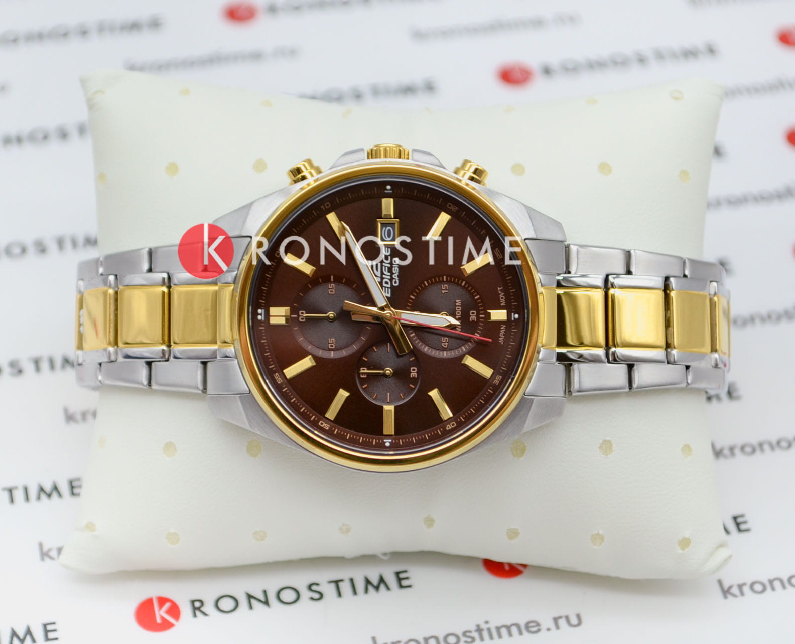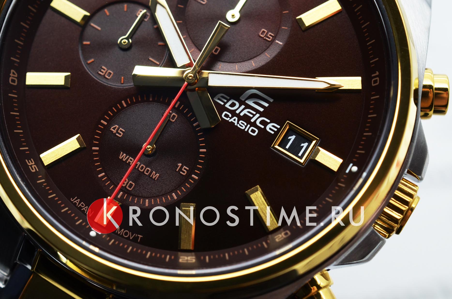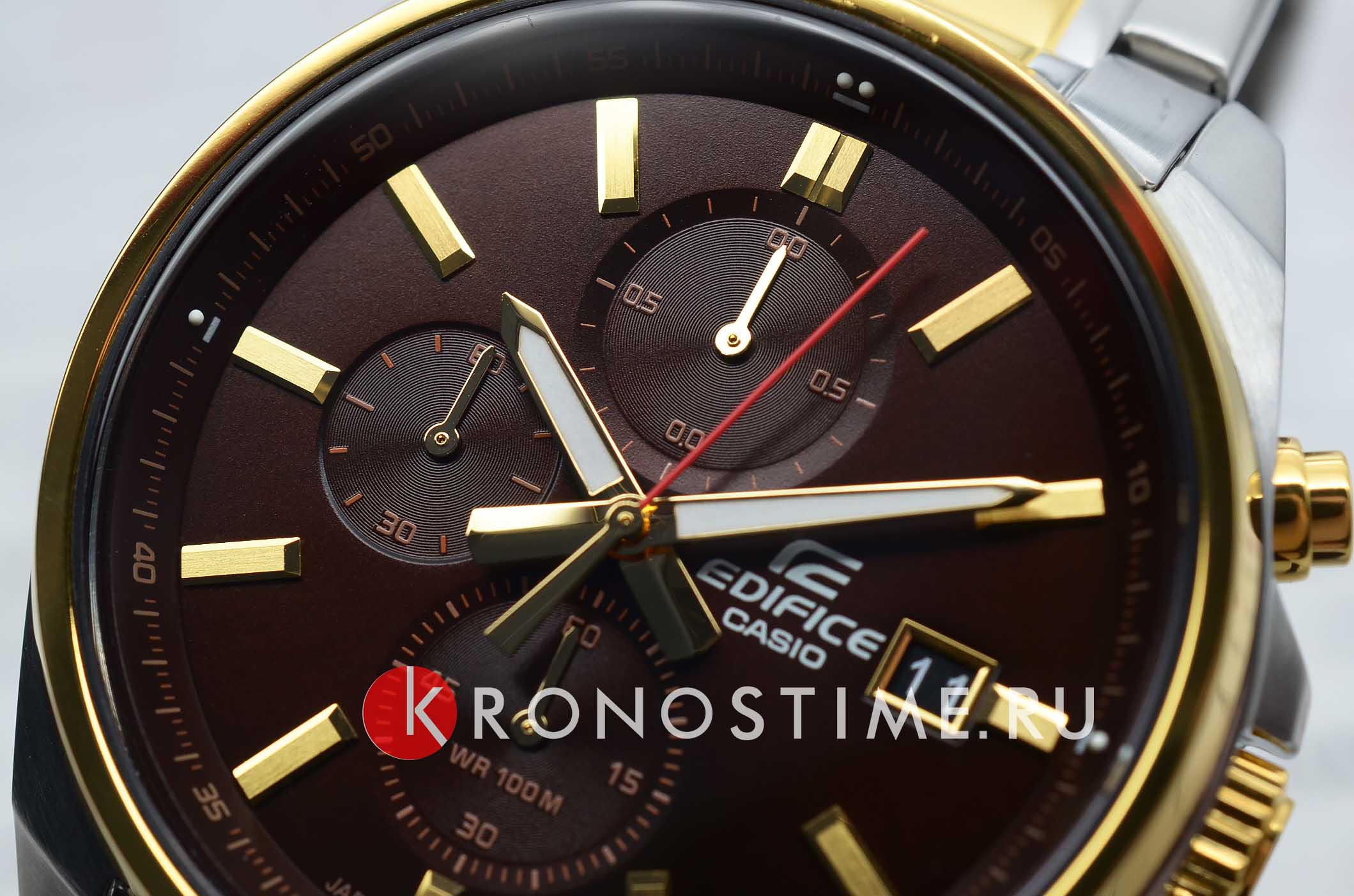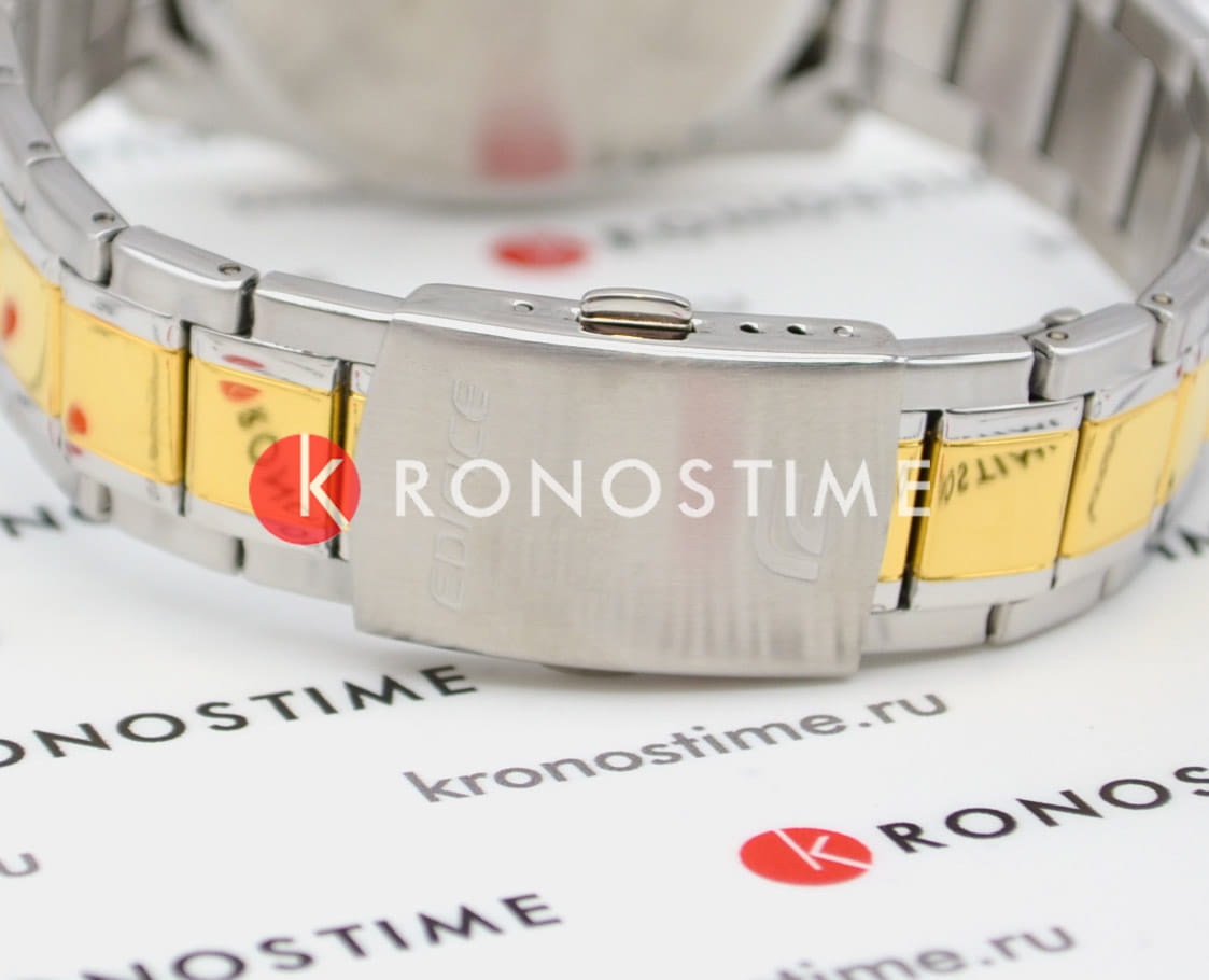 Японские мужские часы-хронографХронографФункция позволяет измерять отрезки времени с особой точностью: часы, минуты, секунды. Верным признаком хронографа является наличие на циферблате 3 дополнительных окошек-счётчиков. Casio Edifice EFV-610SG-5A, кварцевый механизм с высокой точностью. Класс водозащиты: 100 метров, позволит плавать, нырять и заниматься другими водными видами спорта. Корпус часов изготовлен из стали с IP-покрытиемIP-покрытиеМетод ионного напыления. Демонстрирует повышенную устойчивость к истиранию, окислению и химическим веществам. Под воздействием высокого давления и температуры около 1500°C молекулы металла надёжно соединяются с частицами корпуса часов.. Раскладная застёжкаРаскладная застёжкаТакой тип застёжки используется только на браслетах из металла. Она никогда не раскрывается полностью, происходит разделение на 2 и более частей. Раскладывающая застёжка снизит вероятность потери часов к минимуму. с фиксатором. Светонакопительное покрытие NeobriteПодсветка NeobriteИспользование светонакопительных составов на основе сульфида цинка или алюмината стронция, яркий свет можно наблюдать на протяжении 6-10 часов после «зарядки» часов около источника света. обеспечивает длительное послесвечение в темноте даже после кратковременного нахождения на свету. СекундомерСекундомерСекундоме́р — прибор, способный измерять интервалы времени с точностью до долей секунды. с разрешением показаний 1/10 сек и временем измерения 1 ч. Циферблат с окошком даты.