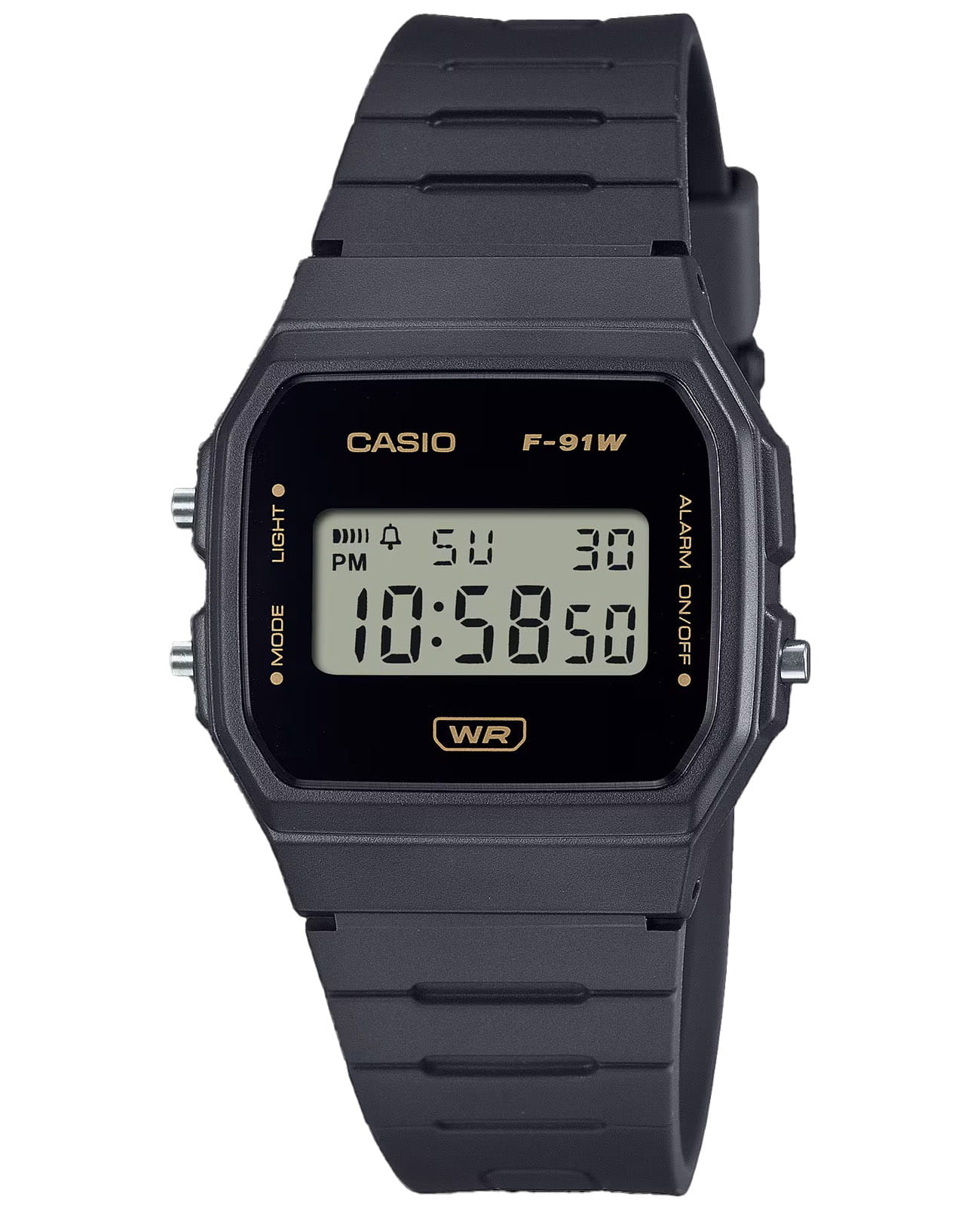 Мужские часы-хронографХронографФункция позволяет измерять отрезки времени с особой точностью: часы, минуты, секунды. Верным признаком хронографа является наличие на циферблате 3 дополнительных окошек-счётчиков. Casio F-91WB-8A, кварцевый механизм с высокой точностью, органическое стекло. Простые и удобные в использовании часы на каждый день в популярном ретро-стиле. Циферблат подсвечивается светодиодомСветодиодная подсветкаСветодиодная или LED-подсветка обеспечивает появление яркого холодного свечения за счёт LED-элементов - маленьких лампочек. Они потребляют минимальное количество энергии, чаще всего можно встретить 1 светодиод, в нижней части циферблата.. 12-ти и 24-х часовой формат времени. СекундомерСекундомерСекундоме́р — прибор, способный измерять интервалы времени с точностью до долей секунды. с точностью показаний 1/100с и временем измерения 1ч. Батарейка рассчитана на 7 лет. Стальная задняя крышка крепится на 4-х винтах. Класс водозащиты: 30 метров, позволит защитить корпус от случайных брызг или капель дождя. Ремешок из полимерного материала на стандартной застежке.