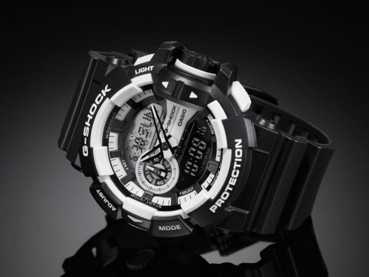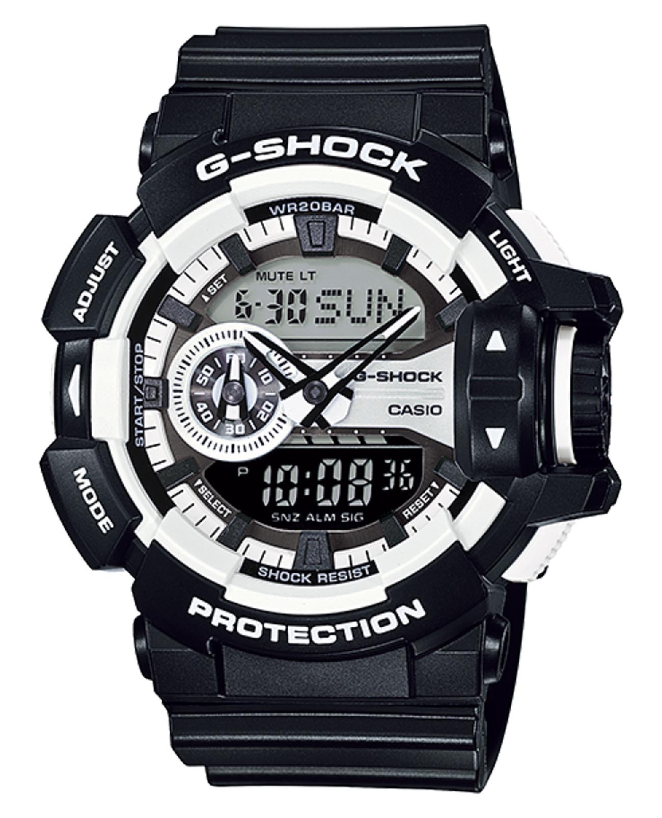 Противоударные, спортивные мужские часы Casio G-Shock GA-400CM-1A, электронный механизм с высокой точностью. Класс водозащиты: 200 метров, позволит плавать, нырять и заниматься другими водными видами спорта. Корпус часов изготовлен из пластика, цвета.