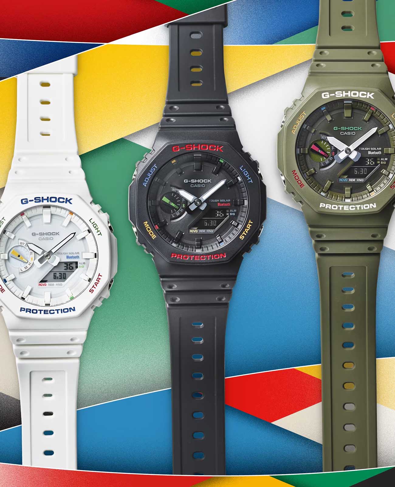 Японские мужские часы-хронографХронографФункция позволяет измерять отрезки времени с особой точностью: часы, минуты, секунды. Верным признаком хронографа является наличие на циферблате 3 дополнительных окошек-счётчиков. Casio G-Shock GA-B2100FC-1A. Обновленная расцветка конца в одном из самых популярных корпусов G-Shock последних лет. Стильная модель в матовом октагоновом корпусе черного цвета с яркими деталями циферблата из серии GA-B2100 сохранила внешний облик своих предшественников по серии GA-2100, но получила более технологичный модуль с блютус синхронизацией со смартфоном и солнечной батареей на борту. Минеральное стеклоМинеральное стеклоМинеральное стекло представляет собой искусственно выращенный минерал кварца. Такое стекло отличается особой устойчивостью к повреждениям и царапинам. Уступает по некоторым качествам сапфировому стеклу. устойчивое к появлению царапин, обладающее высокой прозрачностью. Ударопрочный корпусУдаропрочный корпусМеханизм заключён в корпус, выполненный из современных материалов, устойчивых к ударам, механическим повреждениям и падению с высоты: инновационный пластик, карбон, нержавеющая сталь, титан. Carbon Core GuardCarbon Core Guard Новейшая структура корпуса, разработанная Casio. Полиуретановая пластина дополнительно усилена карбоновыми вставками, что придаёт специальную защиту от механических повреждений. Карбон отличается лёгкостью и прочностью.. Светодиодная подсветкаСветодиодная подсветкаСветодиодная или LED-подсветка обеспечивает появление яркого холодного свечения за счёт LED-элементов - маленьких лампочек. Они потребляют минимальное количество энергии, чаще всего можно встретить 1 светодиод, в нижней части циферблата. освещает весь циферблат, после отпускания кнопки свечение продолжается еще некоторое время. Настраиваемое послесвечение 1,5 или 3сек. Мировое время Мировое время Полезное часовое усложнение, отображающее время в основных городах и известных областях по всему миру, оно связано с часовыми поясами, удобно для путешественников и бизнесменов. 38 городов (38 часовых поясов), всемирное координированное время UTCUTCВсемирное кординационное время, не имеющее привязки к географическому положению Гринвича, основывается на атомном отсчёте времени. Регулировка времени осуществляется более точно, чем устаревшее GMT.