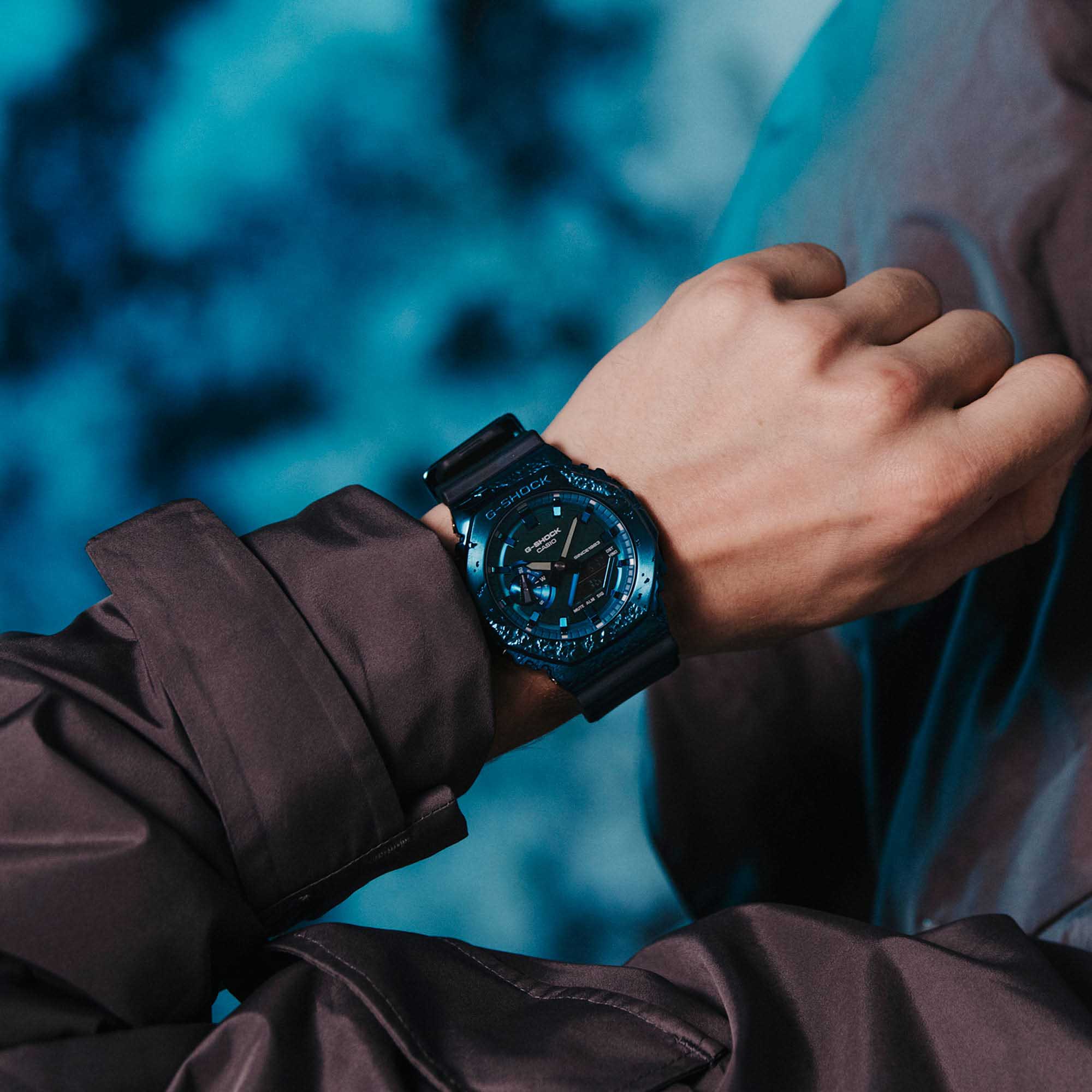 Японские лимитированные мужские часы с секундомеромСекундомерСекундоме́р — прибор, способный измерять интервалы времени с точностью до долей секунды. Casio G-Shock GM-2140GEM-2A, кварцевый механизм с высокой точностью. Класс водозащиты: 200 метров, позволит плавать, нырять и заниматься другими водными видами спорта. Корпус часов изготовлен из стали с PVD-покрытиемPVDУльтратонкое покрытие наносится в технике вакуумного напыления, сочетает в себе нитрид титана особой прочности со слоем золота или оксида хрома. Несёт в себе декоративную или защитную функцию.. УдаропрочныеУдаропрочный корпусМеханизм заключён в корпус, выполненный из современных материалов, устойчивых к ударам, механическим повреждениям и падению с высоты: инновационный пластик, карбон, нержавеющая сталь, титан. модели 40th anniversary Adventurer's Stone вдохновлены камнями, известными искателям приключений как полезные компасы со времен средневековья. Концепция непрерывных инноваций бренда G-SHOCK вдохновляет людей на решение новых задач, и дизайн этой линии основан на ценности, которую эти камни всегда имели для людей, ищущих приключений. Восьмиугольный безельБезельВнешний ободок, закрепляющий стекло. В спортивных часах так называется поворотное кольцо с делениями на циферблате, выполняет роль таймера – замеряет отрезки времени на шкале. Неподвижный безель – элемент декора. Однонаправленно вращающийся безель на дайверских часах позволяет фиксировать моменты погружения и выныривания на поверхность. и простой дизайн популярного GM-2100 выполнены в стиле кордиерита, камня, который ассоциируется с “указывающим путь”. Красивый синий цвет кордиерита воспроизводится с помощью металлического безеляБезельВнешний ободок, закрепляющий стекло. В спортивных часах так называется поворотное кольцо с делениями на циферблате, выполняет роль таймера – замеряет отрезки времени на шкале. Неподвижный безель – элемент декора. Однонаправленно вращающийся безель на дайверских часах позволяет фиксировать моменты погружения и выныривания на поверхность. с синим ионным покрытием и ремешка, выполненных в технике формования Garal, в которой смешиваются смолы двух разных цветов. Силиконовый ремешок на стандартной застёжке. Отображает мировое времяМировое время Полезное часовое усложнение, отображающее время в основных городах и известных областях по всему миру, оно связано с часовыми поясами, удобно для путешественников и бизнесменов. в крупных городах и конкретных районах по всему миру. Минеральное стеклоМинеральное стеклоМинеральное стекло представляет собой искусственно выращенный минерал кварца. Такое стекло отличается особой устойчивостью к повреждениям и царапинам. Уступает по некоторым качествам сапфировому стеклу. - закаленное и способное противостоять большинству царапин. Двойная подсветка: раздельная подсветка аналогового и цифрового компонентов обеспечивает оптимальную читаемость в условиях низкой освещенности. Светодиодная подсветкаСветодиодная подсветкаСветодиодная или LED-подсветка обеспечивает появление яркого холодного свечения за счёт LED-элементов - маленьких лампочек. Они потребляют минимальное количество энергии, чаще всего можно встретить 1 светодиод, в нижней части циферблата., выбираемая продолжительность подсветки (1,5 секунды или 3 секунды), с послесвечением.