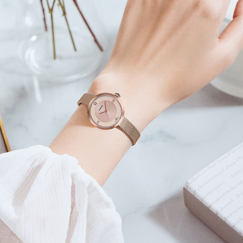 Золотисто-розовая гамма всегда останется актуальной, давая возможность экспериментировать с цветовыми сочетаниями в одежде. Аксессуар имеет стильный браслет миланского плетения с регулируемым креплением, который позволяет часам выглядеть как украшение. Кварцевый японский механизм с высокой точностью хода. Срок службы аккумулятора составляет 3 года. Корпус с PVD-покрытиемPVDУльтратонкое покрытие наносится в технике вакуумного напыления, сочетает в себе нитрид титана особой прочности со слоем золота или оксида хрома. Несёт в себе декоративную или защитную функцию.. Стальной браслет на раскладной застёжкеРаскладная застёжкаТакой тип застёжки используется только на браслетах из металла. Она никогда не раскрывается полностью, происходит разделение на 2 и более частей. Раскладывающая застёжка снизит вероятность потери часов к минимуму. с PVD-покрытиемPVDУльтратонкое покрытие наносится в технике вакуумного напыления, сочетает в себе нитрид титана особой прочности со слоем золота или оксида хрома. Несёт в себе декоративную или защитную функцию.. Класс водозащиты: 30 метров, позволит защитить корпус от случайных брызг или капель дождя.
