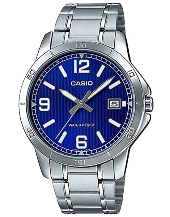 Японские мужские часы Casio MTP-V004D-2B из коллекции Casio MTP выполнены в повседневном стиле и представляют собой универсальный аксессуар на все случаи жизни. Компактный корпус наручных часов сделан из прочной нержавеющей стали с IP-покрытиемIP-покрытиеМетод ионного напыления. Демонстрирует повышенную устойчивость к истиранию, окислению и химическим веществам. Под воздействием высокого давления и температуры около 1500°C молекулы металла надёжно соединяются с частицами корпуса часов.. Стальной браслет с раскладной застёжкойРаскладная застёжкаТакой тип застёжки используется только на браслетах из металла. Она никогда не раскрывается полностью, происходит разделение на 2 и более частей. Раскладывающая застёжка снизит вероятность потери часов к минимуму. удобно сидит на руке. На круглом циферблате аккуратно расположены арабские цифры. Аксессуар прочно сидит на запястье и сделан из качественных и долговечных материалов.