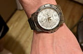 Кварцевый механизм с высокой точностью. Минеральное стеклоМинеральное стеклоМинеральное стекло представляет собой искусственно выращенный минерал кварца. Такое стекло отличается особой устойчивостью к повреждениям и царапинам. Уступает по некоторым качествам сапфировому стеклу. устойчивое к появлению царапин, обладающее высокой прозрачностью. Стрелки с люминесцентным покрытиемЛюминесцентное покрытиеПозволяет считывать показания времени в темноте. Производители наносят на стрелки, часовые индексы, безель или поверхность циферблата светонакопительный состав, дающий холодное свечение.. Класс водозащиты: 30 метров, позволит защитить корпус от случайных брызг или капель дождя. Корпус часов изготовлен из нержавеющей стали. Браслет с раскладной застёжкойРаскладная застёжкаТакой тип застёжки используется только на браслетах из металла. Она никогда не раскрывается полностью, происходит разделение на 2 и более частей. Раскладывающая застёжка снизит вероятность потери часов к минимуму..