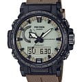 Мужские японские часы Casio Pro Trek PRW-61LD-5 из коллекции Pro Trek отличаются расширенным функционалом на все случаи жизни. Перед вами модель один из флагманов PRO TREK в черном корпусе PRW-61. Данные часы на бежевом полимерном ремешке получили улучшенную структуру корпуса, более устойчивую к ударным нагрузкам и еще более эффективную солнечную батарею, чем их предшественники из знаменитой серии PRW-6000. Особенностью модели является светлый циферблат, полностью покрытый необрайтовым, светящимся в темноте составом. В целом же, дизайн корпуса PRW-61 остался узнаваем и даже с такой начинкой, в которой можно отметить водонепроницаемость корпуса, термометр, барометр, высотомер, цифровой компас, Tough SolarTough SolarТехнология основана на подзарядке аккумулятора от источника солнечного света, специальная панель улавливает солнечные лучи и преобразует их в энергию для работы часов. Достаточно пары минут нахождения на солнце для функционирования часов в течении суток. и радио-синхронизацию, часы отлично подходят в качестве ежедневного аксессуара для жителя современного города. Минеральное стеклоМинеральное стеклоМинеральное стекло представляет собой искусственно выращенный минерал кварца. Такое стекло отличается особой устойчивостью к повреждениям и царапинам. Уступает по некоторым качествам сапфировому стеклу. устойчивое к появлению царапин, обладающее высокой прозрачностью. Отдельно стоит отметить эко-френдли полимер из которого сделаны ремешок, корпус и задняя крышка часов. В данной модели используется пластиковый полимер, сделанный из семян клещевины и кукурузы, а не из нефти, как это обычно бывает. Такой вид полимера является более биологически чистым и меньше загрязняет окружающую среду. Неподвижный безельБезельВнешний ободок, закрепляющий стекло. В спортивных часах так называется поворотное кольцо с делениями на циферблате, выполняет роль таймера – замеряет отрезки времени на шкале. Неподвижный безель – элемент декора. Однонаправленно вращающийся безель на дайверских часах позволяет фиксировать моменты погружения и выныривания на поверхность. из стали с IP-покрытиемIP-покрытиеМетод ионного напыления. Демонстрирует повышенную устойчивость к истиранию, окислению и химическим веществам. Под воздействием высокого давления и температуры около 1500°C молекулы металла надёжно соединяются с частицами корпуса часов.. Функции мирового времениМировое время Полезное часовое усложнение, отображающее время в основных городах и известных областях по всему миру, оно связано с часовыми поясами, удобно для путешественников и бизнесменов. – 29 часовых поясов и UTCUTCВсемирное кординационное время, не имеющее привязки к географическому положению Гринвича, основывается на атомном отсчёте времени. Регулировка времени осуществляется более точно, чем устаревшее GMT.