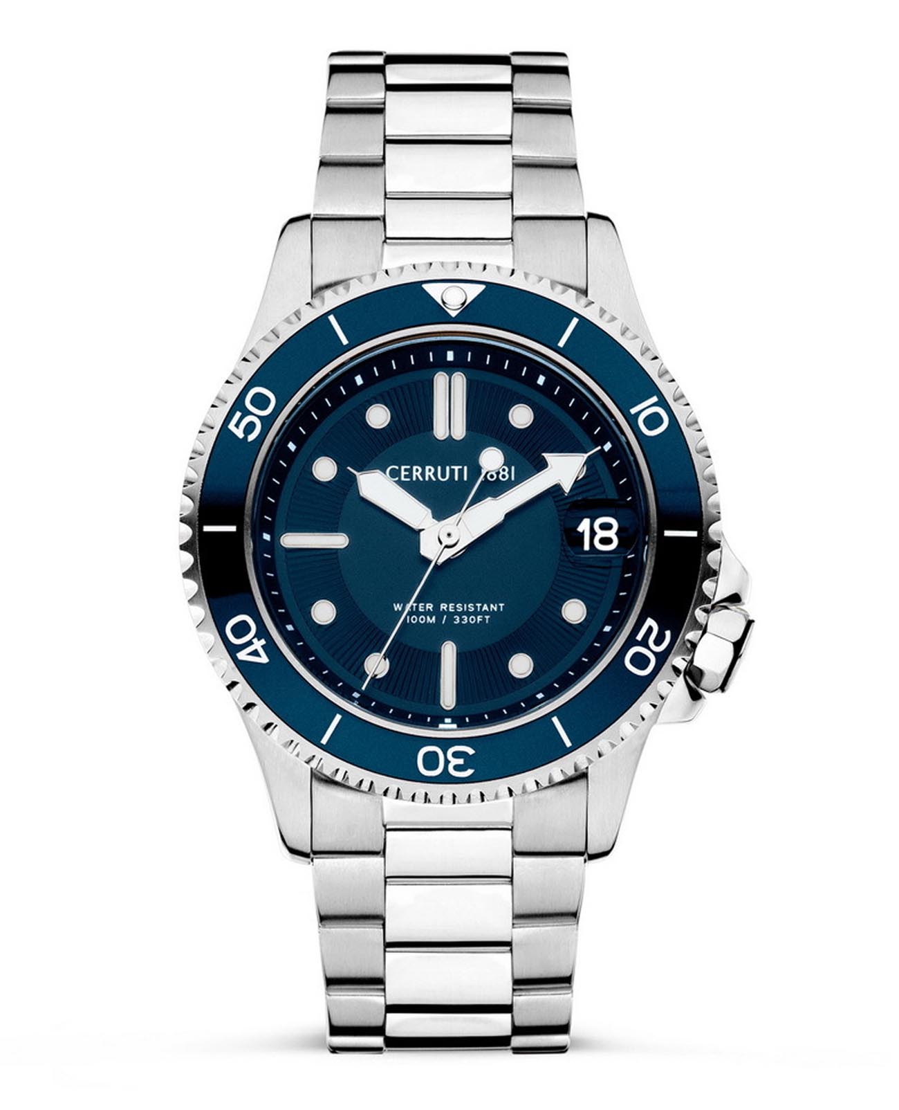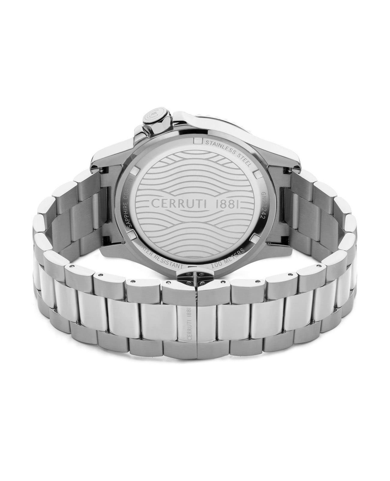 Французские мужские часы Cerruti 1881 Pesaro CIWGH2224205, кварцевый механизм с высокой точностью. Минеральное стеклоМинеральное стеклоМинеральное стекло представляет собой искусственно выращенный минерал кварца. Такое стекло отличается особой устойчивостью к повреждениям и царапинам. Уступает по некоторым качествам сапфировому стеклу. устойчивое к мелким механическим повреждениям. Корпус часов изготовлен из стали. БезельБезельВнешний ободок, закрепляющий стекло. В спортивных часах так называется поворотное кольцо с делениями на циферблате, выполняет роль таймера – замеряет отрезки времени на шкале. Неподвижный безель – элемент декора. Однонаправленно вращающийся безель на дайверских часах позволяет фиксировать моменты погружения и выныривания на поверхность. с IP-покрытиемIP-покрытиеМетод ионного напыления. Демонстрирует повышенную устойчивость к истиранию, окислению и химическим веществам. Под воздействием высокого давления и температуры около 1500°C молекулы металла надёжно соединяются с частицами корпуса часов.. Циферблат выполнен с метками в виде штрихов и точек. Окошко даты находится в положении 3 часа. Стрелки и метки с люминесцентным покрытиемЛюминесцентное покрытиеПозволяет считывать показания времени в темноте. Производители наносят на стрелки, часовые индексы, безель или поверхность циферблата светонакопительный состав, дающий холодное свечение.. Класс водозащиты: 100 метров, позволит плавать, нырять и заниматься другими водными видами спорта. Стальной браслет на застёжке-бабочке с кнопкамиЗастёжка "бабочка"Такой вид застёжки дополняется предохранителями, помогающими избежать случайного раскрытия браслета. Обладают изящным исполнением. .