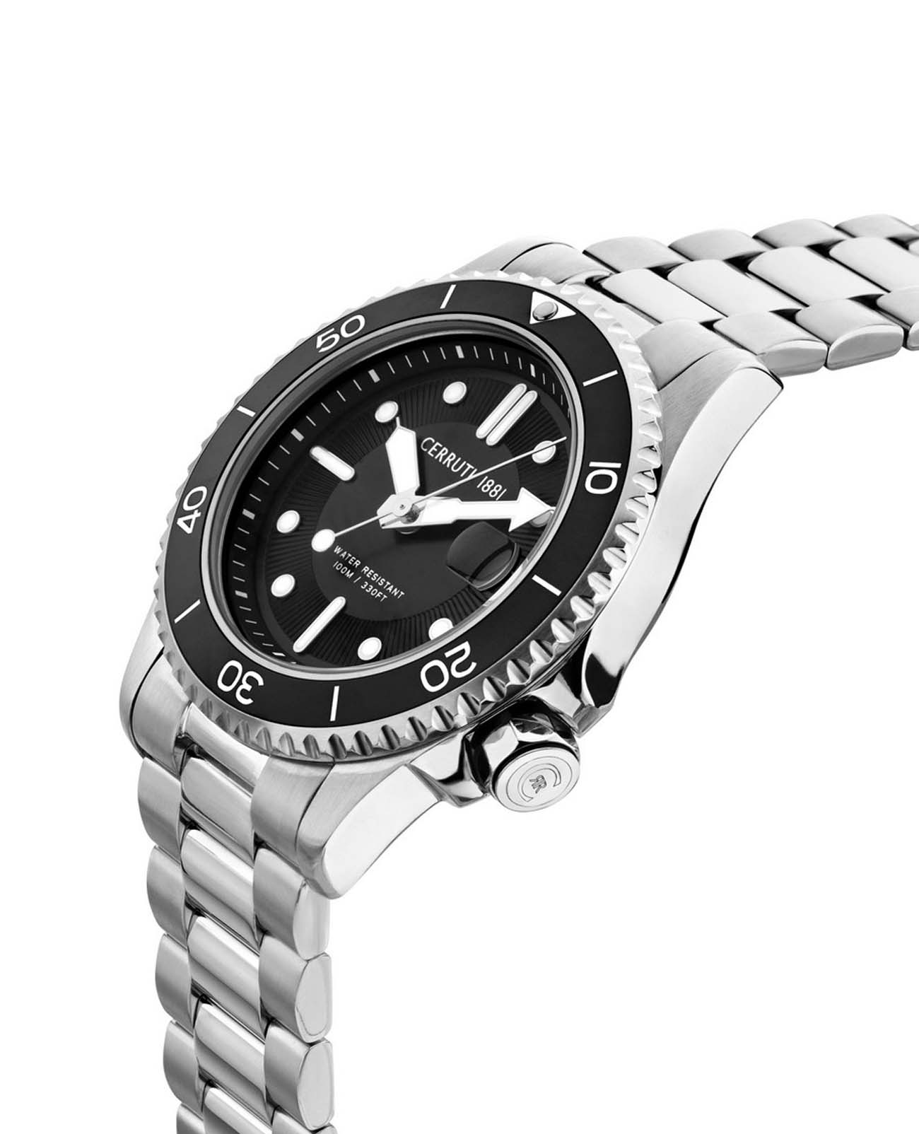 Французские мужские часы Cerruti 1881 Pesaro CIWGH2224207, кварцевый механизм с высокой точностью. Минеральное стеклоМинеральное стеклоМинеральное стекло представляет собой искусственно выращенный минерал кварца. Такое стекло отличается особой устойчивостью к повреждениям и царапинам. Уступает по некоторым качествам сапфировому стеклу. устойчивое к мелким механическим повреждениям. Корпус часов изготовлен из стали. БезельБезельВнешний ободок, закрепляющий стекло. В спортивных часах так называется поворотное кольцо с делениями на циферблате, выполняет роль таймера – замеряет отрезки времени на шкале. Неподвижный безель – элемент декора. Однонаправленно вращающийся безель на дайверских часах позволяет фиксировать моменты погружения и выныривания на поверхность. с IP-покрытиемIP-покрытиеМетод ионного напыления. Демонстрирует повышенную устойчивость к истиранию, окислению и химическим веществам. Под воздействием высокого давления и температуры около 1500°C молекулы металла надёжно соединяются с частицами корпуса часов.. Циферблат выполнен с метками в виде штрихов и точек. Окошко даты находится в положении 3 часа. Стрелки и метки с люминесцентным покрытиемЛюминесцентное покрытиеПозволяет считывать показания времени в темноте. Производители наносят на стрелки, часовые индексы, безель или поверхность циферблата светонакопительный состав, дающий холодное свечение.. Класс водозащиты: 100 метров, позволит плавать, нырять и заниматься другими водными видами спорта. Стальной браслет на застёжке-бабочке с кнопкамиЗастёжка "бабочка"Такой вид застёжки дополняется предохранителями, помогающими избежать случайного раскрытия браслета. Обладают изящным исполнением. .