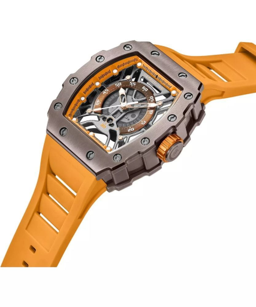 Cerruti 1881 CIWGN0057704 — эффектные мужские часы с дерзким современным дизайном, в которых сочетаются геометрическая точность линий и выразительная динамика формы. Корпус из нержавеющей стали с матовым PVD-покрытиемPVDУльтратонкое покрытие наносится в технике вакуумного напыления, сочетает в себе нитрид титана особой прочности со слоем золота или оксида хрома. Несёт в себе декоративную или защитную функцию. и мощным шестигранным безелемБезельВнешний ободок, закрепляющий стекло. В спортивных часах так называется поворотное кольцо с делениями на циферблате, выполняет роль таймера – замеряет отрезки времени на шкале. Неподвижный безель – элемент декора. Однонаправленно вращающийся безель на дайверских часах позволяет фиксировать моменты погружения и выныривания на поверхность. подчёркивает технический характер модели. Полупрозрачный скелетонизированный циферблат открывает детали механизма, придавая часам индустриальный и технологичный облик. Контрастные стрелки и метки с люминесцентным покрытиемЛюминесцентное покрытиеПозволяет считывать показания времени в темноте. Производители наносят на стрелки, часовые индексы, безель или поверхность циферблата светонакопительный состав, дающий холодное свечение. обеспечивают отличную читаемость, а прочное минеральное стеклоМинеральное стеклоМинеральное стекло представляет собой искусственно выращенный минерал кварца. Такое стекло отличается особой устойчивостью к повреждениям и царапинам. Уступает по некоторым качествам сапфировому стеклу. защищает композицию от внешних воздействий. Эластичный силиконовый ремешок гармонично сочетается с оттенками корпуса и обеспечивает комфорт при ежедневном ношении. Cerruti 1881 — это смелое воплощение итальянского стиля в спортивно-индустриальной эстетике, созданное для мужчин, уверенно идущих в ногу с временем.