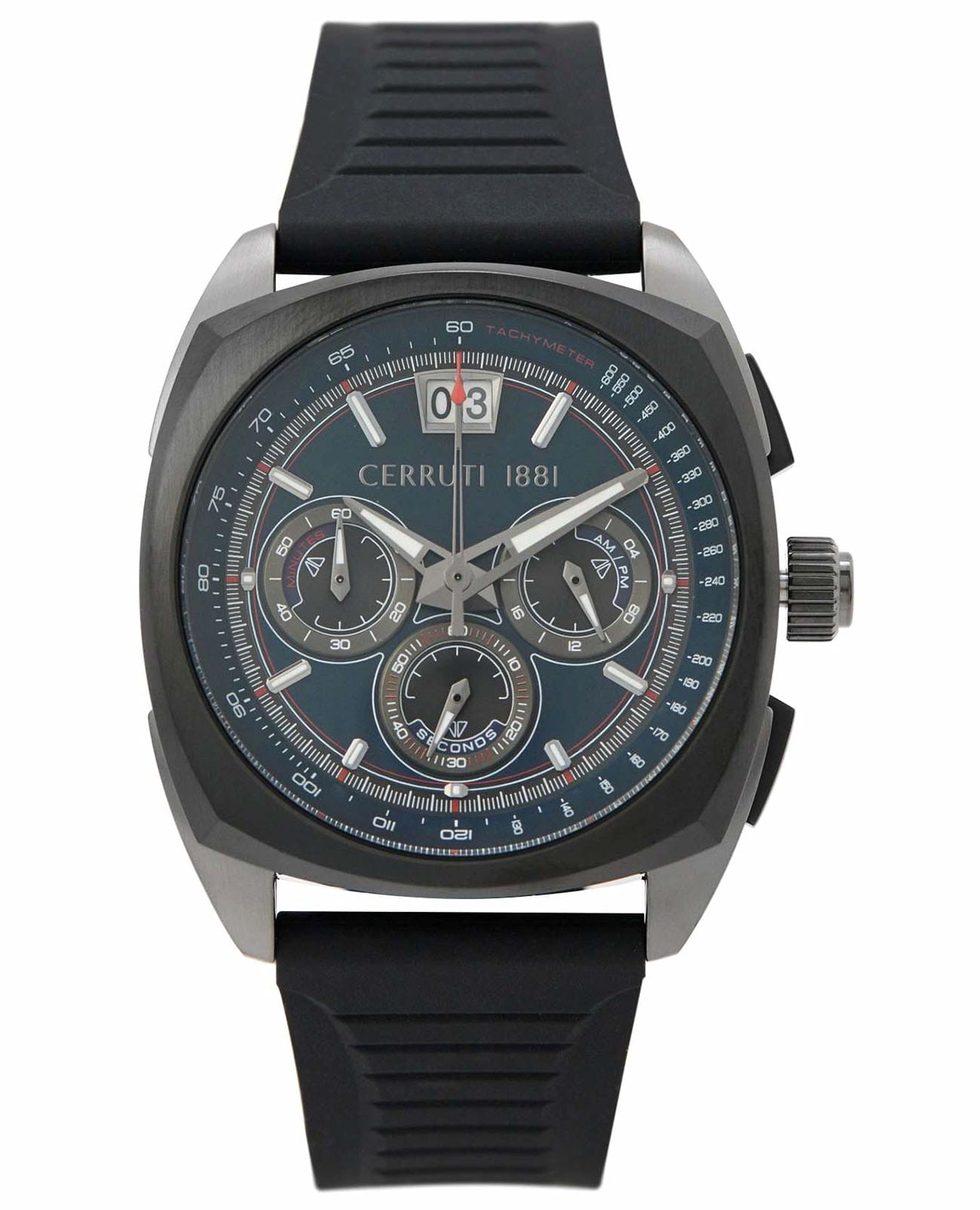 Мужские кварцевые часы Cerruti 1881 Cuneo CIWGO0085104 — спортивный аксессуар с французским дизайном и расширенным функционалом. Корпус из нержавеющей стали 316L с IP-покрытиемIP-покрытиеМетод ионного напыления. Демонстрирует повышенную устойчивость к истиранию, окислению и химическим веществам. Под воздействием высокого давления и температуры около 1500°C молекулы металла надёжно соединяются с частицами корпуса часов., размером 41.3 мм. Циферблат — синий с серыми элементами, с штриховыми метками и окошком даты в положении 12 часов. Стекло — минеральноеМинеральное стеклоМинеральное стекло представляет собой искусственно выращенный минерал кварца. Такое стекло отличается особой устойчивостью к повреждениям и царапинам. Уступает по некоторым качествам сапфировому стеклу. с сапфировым покрытием. Стрелки и метки с люминесцентным покрытиемЛюминесцентное покрытиеПозволяет считывать показания времени в темноте. Производители наносят на стрелки, часовые индексы, безель или поверхность циферблата светонакопительный состав, дающий холодное свечение.. Функции: хронографХронографФункция позволяет измерять отрезки времени с особой точностью: часы, минуты, секунды. Верным признаком хронографа является наличие на циферблате 3 дополнительных окошек-счётчиков., тахиметрТахиметрРазмеченная шкала, располагается на ободке или безеле часов. Тахиметр позволяет рассчитать скорость на определённом участке пути, расстояние измеряется в километрах или милях., секундомер. Ремешок — чёрный силиконовый на стандартной застёжке. Водонепроницаемость 100 м. Идеальный выбор для тех, кто ценит французский дизайн и спортивный стиль.