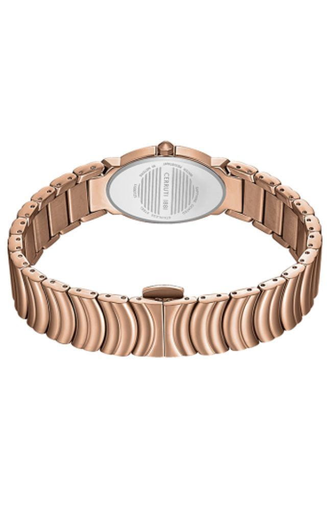 Cerruti 1881 CIWLG0072508 — изысканные женские часы, воплощающие элегантность и благородное очарование итальянского стиля. Корпус овальной формы с тёплым розовым IP-покрытиемIP-покрытиеМетод ионного напыления. Демонстрирует повышенную устойчивость к истиранию, окислению и химическим веществам. Под воздействием высокого давления и температуры около 1500°C молекулы металла надёжно соединяются с частицами корпуса часов. и безелем, инкрустированным сияющими кристаллами, придаёт модели утончённый блеск. Перламутровый циферблат с мозаичной текстурой отражает свет под разными углами, создавая переливы и мягкое сияние. Тонкие стрелки и метки дополняют гармоничный облик, а прочное минеральное стеклоМинеральное стеклоМинеральное стекло представляет собой искусственно выращенный минерал кварца. Такое стекло отличается особой устойчивостью к повреждениям и царапинам. Уступает по некоторым качествам сапфировому стеклу. надёжно защищает циферблат от повреждений. Волнообразный металлический браслет с IP-покрытиемIP-покрытиеМетод ионного напыления. Демонстрирует повышенную устойчивость к истиранию, окислению и химическим веществам. Под воздействием высокого давления и температуры около 1500°C молекулы металла надёжно соединяются с частицами корпуса часов., выполненный в едином тоне с корпусом, оснащён застёжкой «бабочка»Застёжка "бабочка"Такой вид застёжки дополняется предохранителями, помогающими избежать случайного раскрытия браслета. Обладают изящным исполнением. , обеспечивающей комфортное и элегантное прилегание к запястью. Cerruti 1881 — это воплощение женственности, изящества и роскоши в каждой детали.