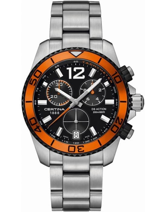 Часы Certina – это воплощение высочайшей точности и надежности часов, система DS расшифровывается Double Security; "двойная надежность". Беспрекословная точность и надежность, использование сложных технологий, инновационный подход в сочетании с традициями создания хронографов, которые марка пронесла через десятилетия, – все это позволяет компании предоставлять элитные, роскошные и стильные часы. На обратной стороне нанесено изображение черепахи в знак долговечности. Задняя крышка с повышенной прочностью, два кольца с уплотнением на заводной головке. DS - означает «Double Security» или «двойная защита». Эта фирменная концепция предусматривает оснащение часов ударопрочным корпусом, сапфировым стеклом, специальными уплотнениями на оси, заводной головке и задней крышке корпуса. Система DS придает часам исключительную стойкость в самых экстремальных условиях.