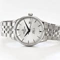 Элегантная модель с узором «солнечные лучи» представлена в лаконичном исполнении, на светлом фоне отчётливо видны тёмно-серебристые стрелки и индексы. Часы с автоматической системой завода оснащены популярным швейцарским калибром ETA Powermatic 80Powermatic 80Эксклюзивный калибр от швейцарской компании ETA с увеличенным запасом хода до 80 часов за счёт удлинённой заводной пружины. Характеризуется улучшенной системой спуска со сниженным трением. с увеличенным запасом хода до 80 часов. Прозрачная задняя крышка подарит вам эстетическое удовольствие при наблюдении за движением деталей механизма. Стекло из сапфира с антибликовой поверхностью. Двойная система защиты Double Security . Корпус и браслет из нержавеющей стали 316L. Водонепроницаемость 100 метров. Апертура даты. Диаметр корпуса: 40 мм.