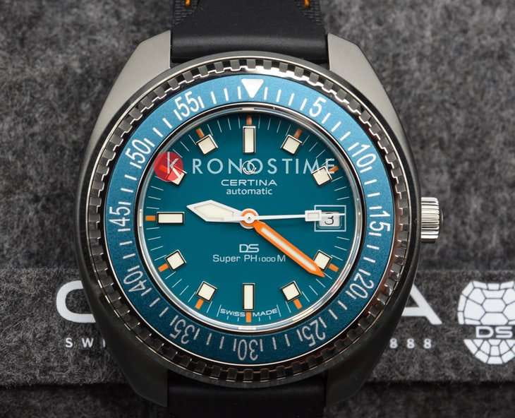 Certina DS SUPER PH1000M STC C024.907.17.041.10 – часы для поклонников ярких аксессуаров. Корпус изготовлен из высококачественной нержавеющей стали 316L с . Под твердым сапфировым стекломСапфировое стеклоПрочный и надёжный материал из кристалла сапфира синтетического происхождения, характеризующийся особой твёрдостью и устойчивостью к царапинам и повреждениям. с антибликовым покрытиемАнтибликовое покрытиеСлой оксида металла в 0,13-0,3 микрон, благодаря которому стекло часов не бликует и не отражает свет. Антибликовое покрытие уменьшает отражение света в 10 раз, обеспечивая отличную читаемость показателей циферблата. находится бирюзовый циферблат на котором вы найдете окошко даты в положении 3 часа, а также маркировку, покрытую люминесцентным покрытиемЛюминесцентное покрытиеПозволяет считывать показания времени в темноте. Производители наносят на стрелки, часовые индексы, безель или поверхность циферблата светонакопительный состав, дающий холодное свечение. Super-LumiNova. Все это приводится в действие автоматическим механизмом Powermatic 80Powermatic 80Эксклюзивный калибр от швейцарской компании ETA с увеличенным запасом хода до 80 часов за счёт удлинённой заводной пружины. Характеризуется улучшенной системой спуска со сниженным трением..611 с пружиной Nivachron™Nivachron™Специально разработанный инновационный сплав Nivachron™ повышает устойчивость часов к воздействию магнитных полей.. Класс водозащиты: 1000 метров, позволит плавать, нырять и заниматься другими водными видами спорта. Кожаный ремешок. БезельБезельВнешний ободок, закрепляющий стекло. В спортивных часах так называется поворотное кольцо с делениями на циферблате, выполняет роль таймера – замеряет отрезки времени на шкале. Неподвижный безель – элемент декора. Однонаправленно вращающийся безель на дайверских часах позволяет фиксировать моменты погружения и выныривания на поверхность. из нержавеющей стали с IP-покрытиемIP-покрытиеМетод ионного напыления. Демонстрирует повышенную устойчивость к истиранию, окислению и химическим веществам. Под воздействием высокого давления и температуры около 1500°C молекулы металла надёжно соединяются с частицами корпуса часов..