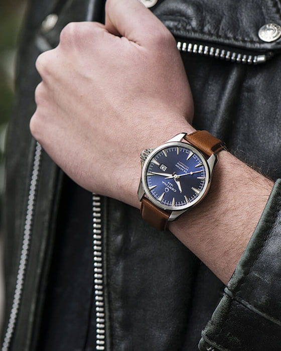 Классическая модель имеет насыщенно-синий циферблат, дополненный крупными индексами. Это обеспечивает оптимальную читаемость данных под любым углом. Ремешок из натуральной кожи актуален уже не первое десятилетие. Высокая точность хода обеспечивается швейцарским автоматическим механизмом ETA Powermatic 80Powermatic 80Эксклюзивный калибр от швейцарской компании ETA с увеличенным запасом хода до 80 часов за счёт удлинённой заводной пружины. Характеризуется улучшенной системой спуска со сниженным трением. с запасом хода 80 часов. Завинчивающаяся задняя крышка сделана прозрачной. Стекло из сапфира с антибликовым покрытием. Заводная головка с защитой. DS ConceptDS ConceptDouble Security Concept, обозначает двойную надёжность и безупречную точность часов Certina. Двойная система защиты подразумевает обеспечение максимальной устойчивости к ударам и высоких показателей водонепроницаемости.. Водонепроницаемость 200 метров. Люминесцентная подсветкаЛюминесцентное покрытиеПозволяет считывать показания времени в темноте. Производители наносят на стрелки, часовые индексы, безель или поверхность циферблата светонакопительный состав, дающий холодное свечение.. Безопасная . Указатель дня недели и даты. Диаметр корпуса: 41 мм.