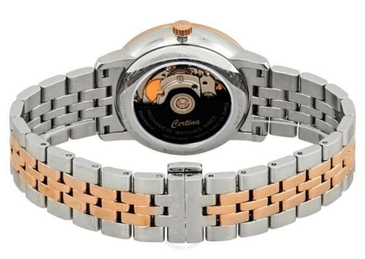 Модель отражает элегантность и изысканность. Корпус и браслет из нержавеющей стали 316L с частичным PVD-покрытиемPVDУльтратонкое покрытие наносится в технике вакуумного напыления, сочетает в себе нитрид титана особой прочности со слоем золота или оксида хрома. Несёт в себе декоративную или защитную функцию.. Система DS ConceptDS ConceptDouble Security Concept, обозначает двойную надёжность и безупречную точность часов Certina. Двойная система защиты подразумевает обеспечение максимальной устойчивости к ударам и высоких показателей водонепроницаемости.. Сапфировое стекло с антибликовым покрытием. Окошко даты находится на 6 часах.Водозащита 100 метров, позволит плавать, нырять и заниматься другими водными видами спорта }.