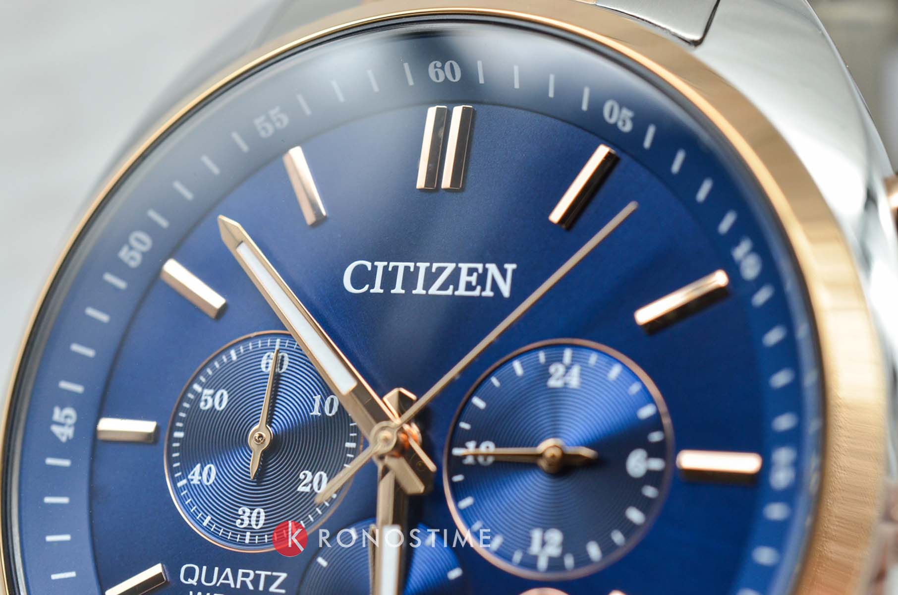 Citizen Chronograph AN8216-50L часы-хронографХронографФункция позволяет измерять отрезки времени с особой точностью: часы, минуты, секунды. Верным признаком хронографа является наличие на циферблате 3 дополнительных окошек-счётчиков. с секундомеромСекундомерСекундоме́р — прибор, способный измерять интервалы времени с точностью до долей секунды.. Корпус из нержавеющей стали диаметром 42 мм идеально сбалансирован. Минеральное стеклоМинеральное стеклоМинеральное стекло представляет собой искусственно выращенный минерал кварца. Такое стекло отличается особой устойчивостью к повреждениям и царапинам. Уступает по некоторым качествам сапфировому стеклу. обеспечивает отличную защиту циферблата от царапин. Часы работают на основе кварцевого механизма. Стальной браслет на раскладной застёжкеРаскладная застёжкаТакой тип застёжки используется только на браслетах из металла. Она никогда не раскрывается полностью, происходит разделение на 2 и более частей. Раскладывающая застёжка снизит вероятность потери часов к минимуму. идеально дополняют дизайн часов, обеспечивая комфортное ношение. БезельБезельВнешний ободок, закрепляющий стекло. В спортивных часах так называется поворотное кольцо с делениями на циферблате, выполняет роль таймера – замеряет отрезки времени на шкале. Неподвижный безель – элемент декора. Однонаправленно вращающийся безель на дайверских часах позволяет фиксировать моменты погружения и выныривания на поверхность. с IP-покрытиемIP-покрытиеМетод ионного напыления. Демонстрирует повышенную устойчивость к истиранию, окислению и химическим веществам. Под воздействием высокого давления и температуры около 1500°C молекулы металла надёжно соединяются с частицами корпуса часов.. Секундомер с точностью показаний 1c и временем измерения 60мин. Окошко даты находится между часовыми отметками 4 и 5. 12-ти и 24-х часовой формат времени отображается на отдельном циферблате. Циферблат с метками в виде штрихов выполнен по технологии Sunray (солнечные лучи). Заводная головка с защитой. Часы обладают водонепроницаемостью до 50WR, что делает их идеальными для повседневной носки.
