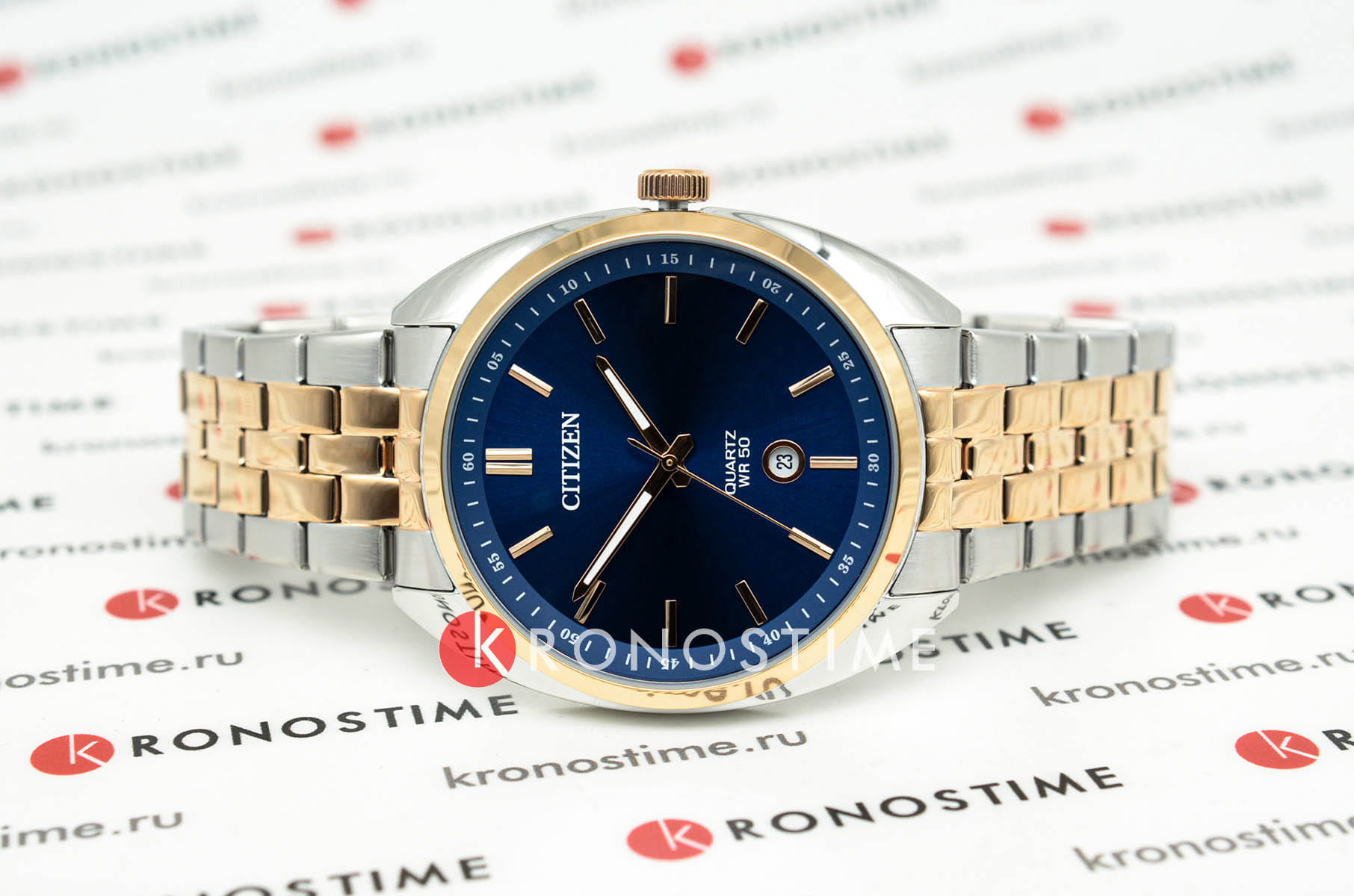 Часы Citizen BI5096-53L — это стильная и надежная модель японского производства, оснащённая высокоточным кварцевым механизмом Citizen G111. Круглый корпус диаметром 42 мм выполнен из нержавеющей стали, что придаёт изделию элегантный и современный вид, а также защищает от внешних воздействий. БезельБезельВнешний ободок, закрепляющий стекло. В спортивных часах так называется поворотное кольцо с делениями на циферблате, выполняет роль таймера – замеряет отрезки времени на шкале. Неподвижный безель – элемент декора. Однонаправленно вращающийся безель на дайверских часах позволяет фиксировать моменты погружения и выныривания на поверхность. с элегантным золотистым IP-покрытиемIP-покрытиеМетод ионного напыления. Демонстрирует повышенную устойчивость к истиранию, окислению и химическим веществам. Под воздействием высокого давления и температуры около 1500°C молекулы металла надёжно соединяются с частицами корпуса часов.. Синий циферблат оформлен минималистично, с метками в виде аккуратных штрихов и заострёнными прямоугольными стрелками в стиле Baton с люминесцентным покрытиемЛюминесцентное покрытиеПозволяет считывать показания времени в темноте. Производители наносят на стрелки, часовые индексы, безель или поверхность циферблата светонакопительный состав, дающий холодное свечение. для удобного считывания времени даже в темноте. Минеральное стеклоМинеральное стеклоМинеральное стекло представляет собой искусственно выращенный минерал кварца. Такое стекло отличается особой устойчивостью к повреждениям и царапинам. Уступает по некоторым качествам сапфировому стеклу. гарантирует защиту от царапин и сохраняет презентабельный внешний вид на долгое время. Окошко календаря с отображением числа расположено в позиции 6 часов, что добавляет функциональности и подчеркивает современный стиль модели. Рифленая заводная головка обеспечивает лёгкость настройки, а стальной браслет с частичным золотистым IP-покрытиемIP-покрытиеМетод ионного напыления. Демонстрирует повышенную устойчивость к истиранию, окислению и химическим веществам. Под воздействием высокого давления и температуры около 1500°C молекулы металла надёжно соединяются с частицами корпуса часов. и раскладывающейся застёжкой надёжно фиксирует часы на запястье. Водозащита до 50 метров позволяет не опасаться случайного контакта с водой в повседневной жизни.