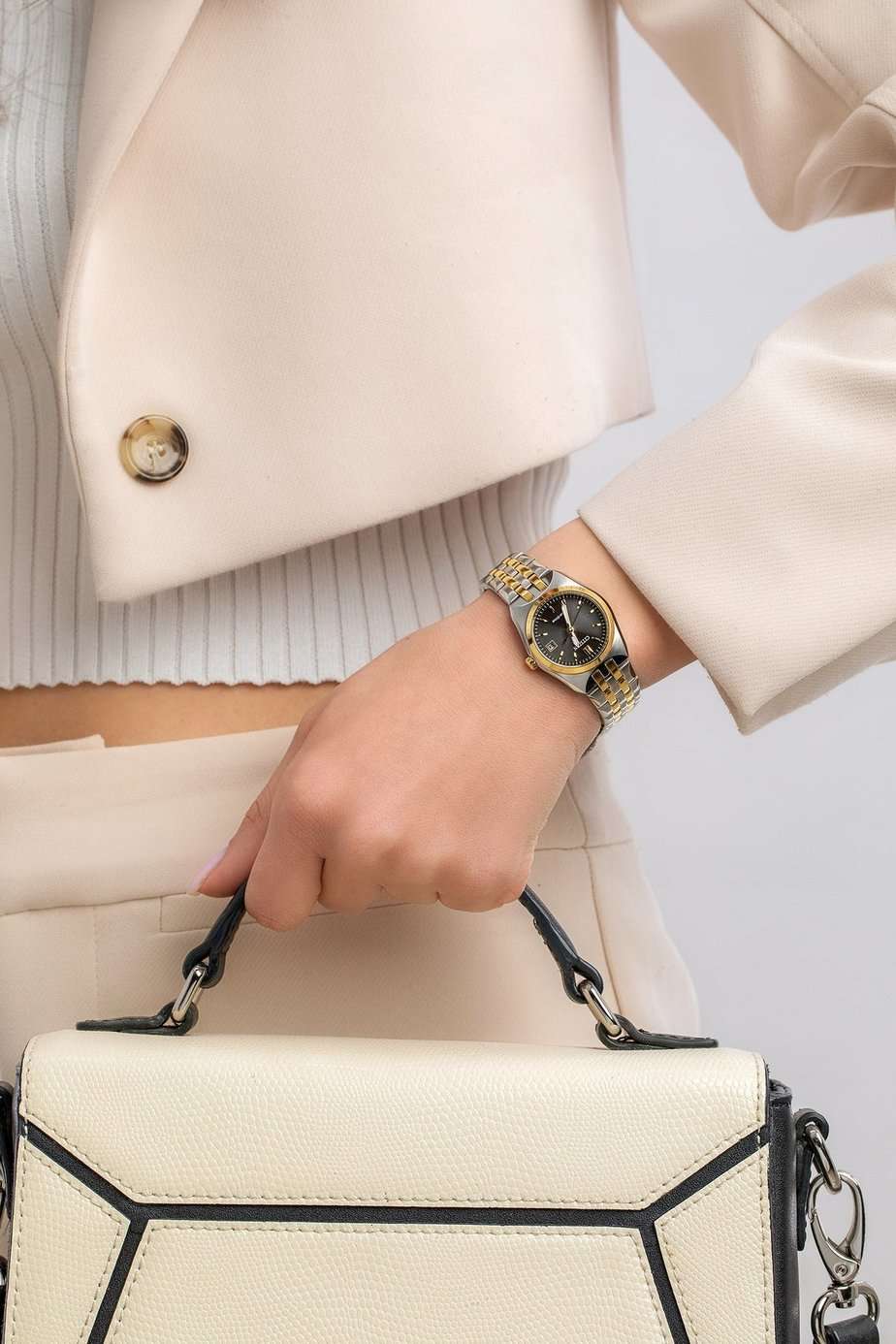 Часы Citizen EW2299-50E объединяют в себе современные технологии и изысканный дизайн. Надежный японский кварцевый механизм с инновационной системой Eco-Drive позволяет часам работать без замены батарейки, используя энергию света и обеспечивая запас хода до 180 дней. Модель оснащена функциями индикации заряда и предотвращения перезарядки, что делает эксплуатацию максимально удобной и безопасной. Корпус диаметром 27 мм выполнен из нержавеющей стали, а безельБезельВнешний ободок, закрепляющий стекло. В спортивных часах так называется поворотное кольцо с делениями на циферблате, выполняет роль таймера – замеряет отрезки времени на шкале. Неподвижный безель – элемент декора. Однонаправленно вращающийся безель на дайверских часах позволяет фиксировать моменты погружения и выныривания на поверхность. и браслет (частично) с золотистым IP-покрытиемIP-покрытиеМетод ионного напыления. Демонстрирует повышенную устойчивость к истиранию, окислению и химическим веществам. Под воздействием высокого давления и температуры около 1500°C молекулы металла надёжно соединяются с частицами корпуса часов., придающим изделию дополнительную прочность и стильный внешний вид. Сапфировое стеклоСапфировое стеклоПрочный и надёжный материал из кристалла сапфира синтетического происхождения, характеризующийся особой твёрдостью и устойчивостью к царапинам и повреждениям. устойчиво к царапинам и надолго сохраняет прозрачность. Браслет с раскладной застёжкойРаскладная застёжкаТакой тип застёжки используется только на браслетах из металла. Она никогда не раскрывается полностью, происходит разделение на 2 и более частей. Раскладывающая застёжка снизит вероятность потери часов к минимуму. гармонично завершает образ часов. Водозащита уровня WR 100 позволяет не снимать часы во время плавания и занятий сноркелингом. Циферблат украшен аккуратными часовыми индексами в виде штрихов дополнен окошком даты и стрелками с люминесцентным покрытиемЛюминесцентное покрытиеПозволяет считывать показания времени в темноте. Производители наносят на стрелки, часовые индексы, безель или поверхность циферблата светонакопительный состав, дающий холодное свечение.. Часы созданы и собраны в Японии, что гарантирует высокое качество и надежность.