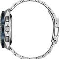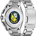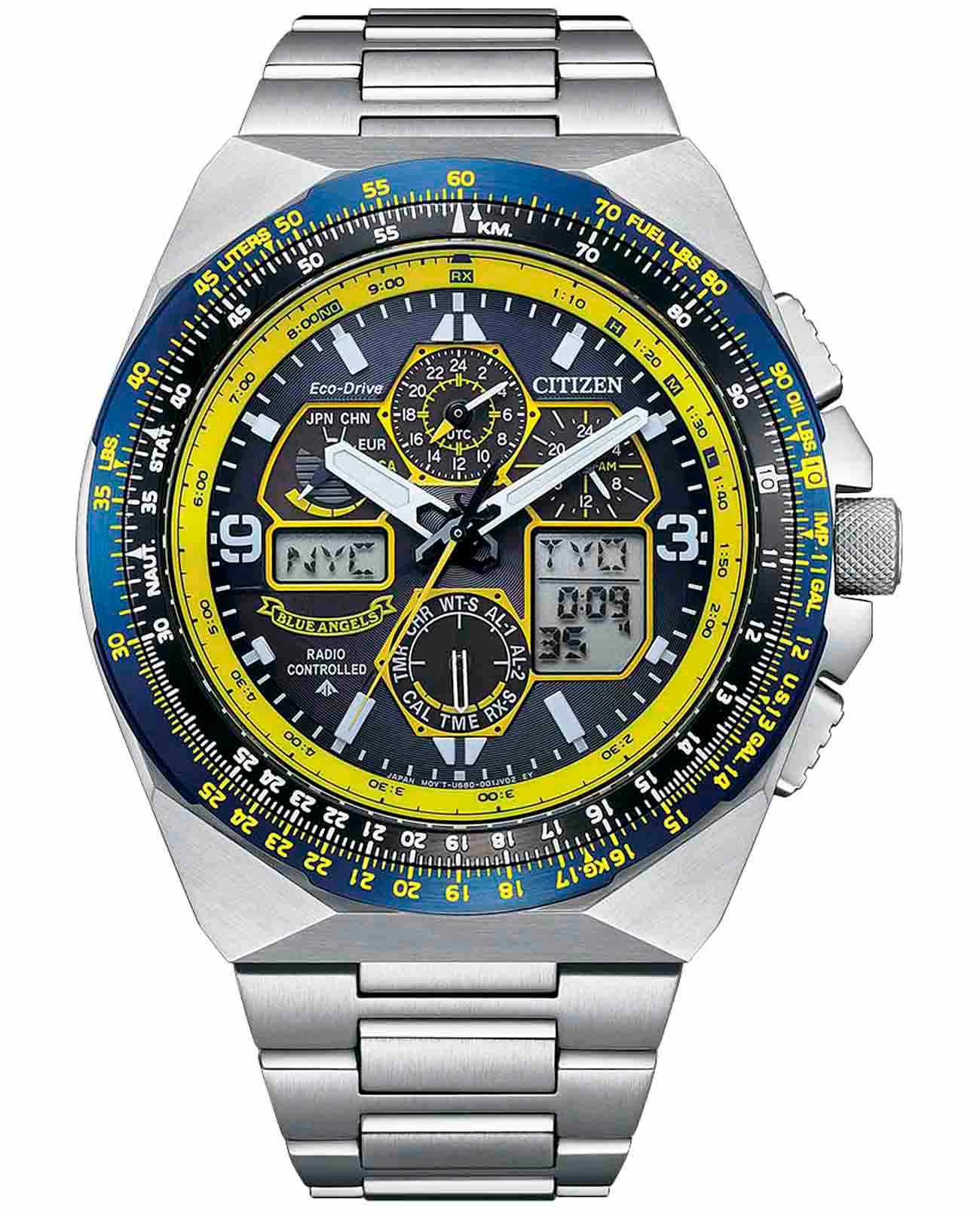 Citizen Promaster JY8125-54L часы-хронографХронографФункция позволяет измерять отрезки времени с особой точностью: часы, минуты, секунды. Верным признаком хронографа является наличие на циферблате 3 дополнительных окошек-счётчиков. с секундомеромСекундомерСекундоме́р — прибор, способный измерять интервалы времени с точностью до долей секунды. спортивного дизайна с высоким уровнем водозащиты. Корпус из нержавеющей стали диаметром 45,7 мм идеально сбалансирован. Сапфировое стеклоСапфировое стеклоПрочный и надёжный материал из кристалла сапфира синтетического происхождения, характеризующийся особой твёрдостью и устойчивостью к царапинам и повреждениям. с антибликовым покрытием обеспечивает отличную защиту циферблата от царапин. Часы работают на основе кварцевого механизма, питание от солнечной энергии. Стальной браслет на раскладной застёжкеРаскладная застёжкаТакой тип застёжки используется только на браслетах из металла. Она никогда не раскрывается полностью, происходит разделение на 2 и более частей. Раскладывающая застёжка снизит вероятность потери часов к минимуму. идеально дополняют дизайн часов, обеспечивая комфортное ношение. Стрелки и метки на циферблате имеют люминесцентное покрытиеЛюминесцентное покрытиеПозволяет считывать показания времени в темноте. Производители наносят на стрелки, часовые индексы, безель или поверхность циферблата светонакопительный состав, дающий холодное свечение. позволяющее легко определять время даже в темноте. Поворотный безельБезельВнешний ободок, закрепляющий стекло. В спортивных часах так называется поворотное кольцо с делениями на циферблате, выполняет роль таймера – замеряет отрезки времени на шкале. Неподвижный безель – элемент декора. Однонаправленно вращающийся безель на дайверских часах позволяет фиксировать моменты погружения и выныривания на поверхность. с IP-покрытиемIP-покрытиеМетод ионного напыления. Демонстрирует повышенную устойчивость к истиранию, окислению и химическим веществам. Под воздействием высокого давления и температуры около 1500°C молекулы металла надёжно соединяются с частицами корпуса часов.. Автоматический прием сигналов от радиовышек, расположенных в различных точках земного шара, которые передают временные сигналы от определенных атомных часов. Коррекция текущего времени радиосигналом на территории почти всей Европы, США, Японии и Китая. Функция индикации заряда (EOL) и предотвращения перезарядки. Мировое времяМировое время Полезное часовое усложнение, отображающее время в основных городах и известных областях по всему миру, оно связано с часовыми поясами, удобно для путешественников и бизнесменов. - 43 города, переход на зимнее и летнее время. Всемирное координированное время UTCUTCВсемирное кординационное время, не имеющее привязки к географическому положению Гринвича, основывается на атомном отсчёте времени. Регулировка времени осуществляется более точно, чем устаревшее GMT.