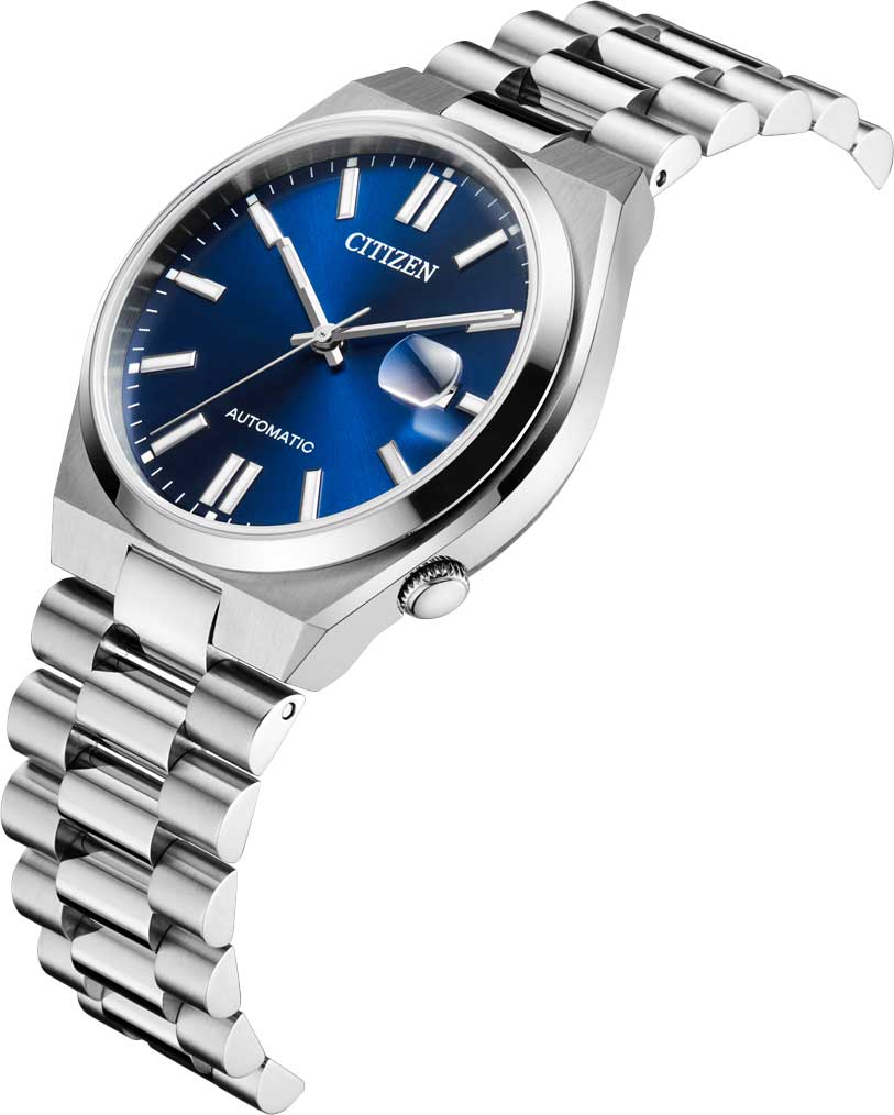 Мужские часы Citizen Tsuyosa NJ0150-81L - идеальное сочетание классического и современного дизайна. Корпус из нержавеющей стали диаметром 40 мм идеально сбалансирован. Сапфировое стеклоСапфировое стеклоПрочный и надёжный материал из кристалла сапфира синтетического происхождения, характеризующийся особой твёрдостью и устойчивостью к царапинам и повреждениям. обеспечивает отличную защиту циферблата от царапин. Механические часы с автоподзаводом. Стальной браслет на раскладной застёжкеРаскладная застёжкаТакой тип застёжки используется только на браслетах из металла. Она никогда не раскрывается полностью, происходит разделение на 2 и более частей. Раскладывающая застёжка снизит вероятность потери часов к минимуму. идеально дополняют дизайн часов, обеспечивая комфортное ношение. Метки в виде штрихов. Окошко даты в положении 3 часа. Стрелки и метки с люминесцентным покрытиемЛюминесцентное покрытиеПозволяет считывать показания времени в темноте. Производители наносят на стрелки, часовые индексы, безель или поверхность циферблата светонакопительный состав, дающий холодное свечение.. В механизме 21 камень, частота 21600 полуколебаний в час. Запас хода 42 часа. Рифленая заводная головка находится в положении 4 часа. Завинчивающаяся прозрачная задняя крышка. Часы обладают водонепроницаемостью до 50WR, что делает их идеальными для повседневной носки.