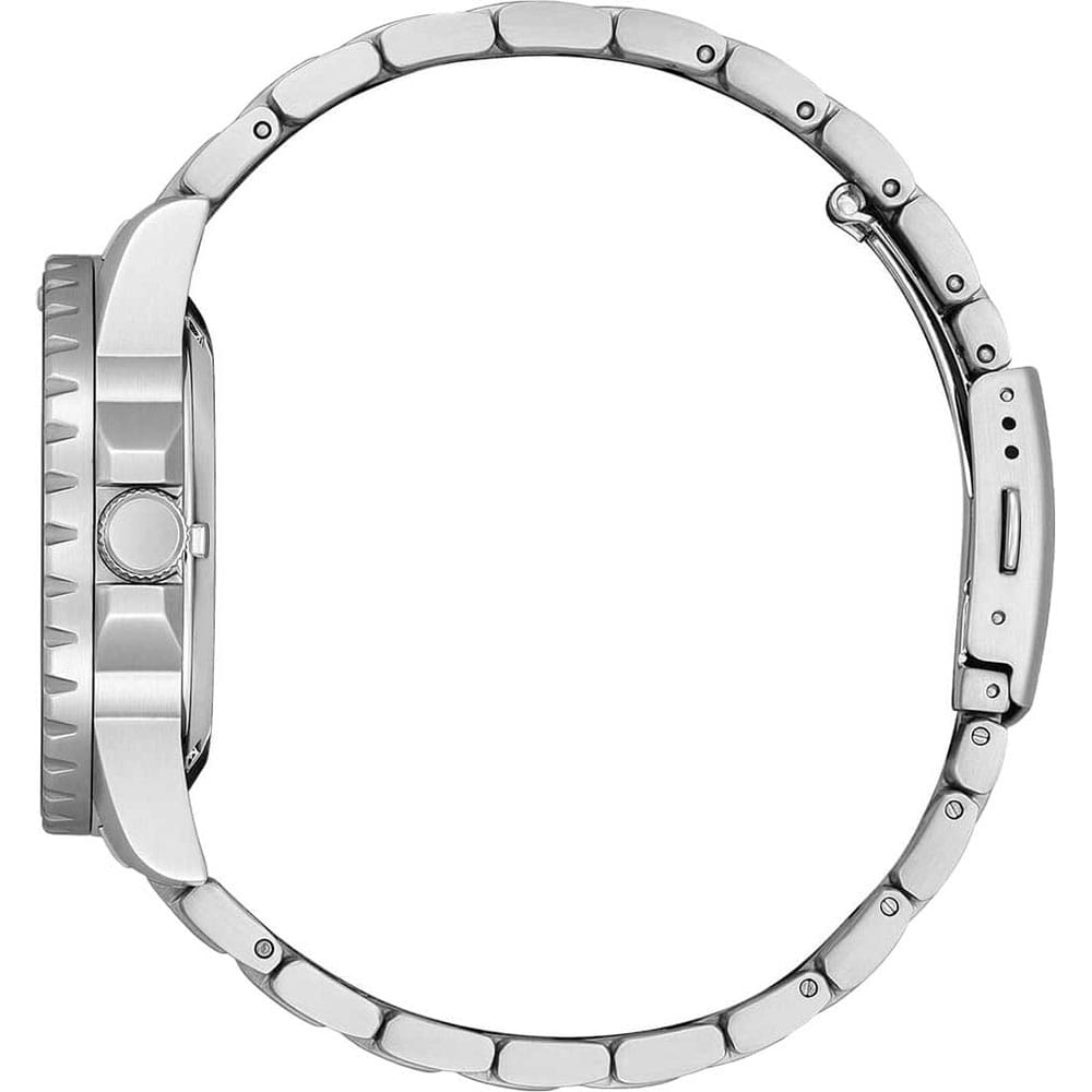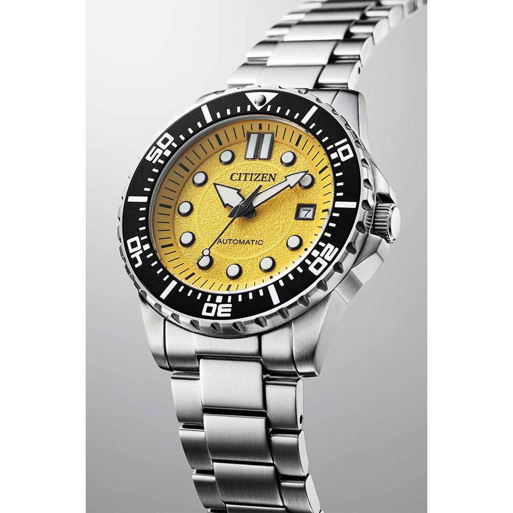 Мужские наручные часы Citizen Automatic NJ0170-83Z - сочетание спортивного стиля и повседневной функциональности. Корпус из нержавеющей стали диаметром 43 мм идеально сбалансирован. Минеральное стеклоМинеральное стеклоМинеральное стекло представляет собой искусственно выращенный минерал кварца. Такое стекло отличается особой устойчивостью к повреждениям и царапинам. Уступает по некоторым качествам сапфировому стеклу. обеспечивает отличную защиту циферблата от царапин. Механические часы с автоподзаводом. Стальной браслет на раскладной застёжкеРаскладная застёжкаТакой тип застёжки используется только на браслетах из металла. Она никогда не раскрывается полностью, происходит разделение на 2 и более частей. Раскладывающая застёжка снизит вероятность потери часов к минимуму. идеально дополняют дизайн часов, обеспечивая комфортное ношение. Окошко даты в положении 3 часа. Однонаправленный вращающийся безельБезельВнешний ободок, закрепляющий стекло. В спортивных часах так называется поворотное кольцо с делениями на циферблате, выполняет роль таймера – замеряет отрезки времени на шкале. Неподвижный безель – элемент декора. Однонаправленно вращающийся безель на дайверских часах позволяет фиксировать моменты погружения и выныривания на поверхность. с IP-покрытиемIP-покрытиеМетод ионного напыления. Демонстрирует повышенную устойчивость к истиранию, окислению и химическим веществам. Под воздействием высокого давления и температуры около 1500°C молекулы металла надёжно соединяются с частицами корпуса часов.. Стрелки и метки с люминесцентным покрытиемЛюминесцентное покрытиеПозволяет считывать показания времени в темноте. Производители наносят на стрелки, часовые индексы, безель или поверхность циферблата светонакопительный состав, дающий холодное свечение.. Завинчивающаяся прозрачная задняя крышка. Циферблат с часовыми индексами в виде штрихов и точек. Часы обладают водонепроницаемостью до 100WR, что делает их идеальными для повседневной носки.