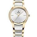 Женские наручные часы Sandara CO203.03 сочетают в себе элегантный дизайн и надежность современных технологий. Модель обладает круглым корпусом диаметром 28 мм, изготовленным из нержавеющей стали, что обеспечивает высокую устойчивость к внешним воздействиям. БезельБезельВнешний ободок, закрепляющий стекло. В спортивных часах так называется поворотное кольцо с делениями на циферблате, выполняет роль таймера – замеряет отрезки времени на шкале. Неподвижный безель – элемент декора. Однонаправленно вращающийся безель на дайверских часах позволяет фиксировать моменты погружения и выныривания на поверхность. с PVD-покрытиемPVDУльтратонкое покрытие наносится в технике вакуумного напыления, сочетает в себе нитрид титана особой прочности со слоем золота или оксида хрома. Несёт в себе декоративную или защитную функцию.. Браслет выполнен из нержавеющей стали с PVD-покрытиемPVDУльтратонкое покрытие наносится в технике вакуумного напыления, сочетает в себе нитрид титана особой прочности со слоем золота или оксида хрома. Несёт в себе декоративную или защитную функцию. и застежкой-бабочкойЗастёжка "бабочка"Такой вид застёжки дополняется предохранителями, помогающими избежать случайного раскрытия браслета. Обладают изящным исполнением. , которая отличается удобством использования и подходит для запястий любого размера благодаря своей посадке. Циферблат декорирован кристаллами, которые придают часам особый шик и неповторимый вид. Для защиты используется сапфировое стеклоСапфировое стеклоПрочный и надёжный материал из кристалла сапфира синтетического происхождения, характеризующийся особой твёрдостью и устойчивостью к царапинам и повреждениям., обеспечивающее прочную защиту от царапин. Часы работают на кварцевом механизме, что гарантирует точное время без необходимости подзаводки. Водонепроницаемость часов составляет 5 атмосфер, что позволяет использовать их в повседневной жизни, однако не рекомендуется для плавания или водных видов спорта.
