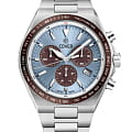 Мужские наручные часы-хронографХронографФункция позволяет измерять отрезки времени с особой точностью: часы, минуты, секунды. Верным признаком хронографа является наличие на циферблате 3 дополнительных окошек-счётчиков. Cover CO212.07 из коллекции Iconosteel сочетают в себе классический дизайн и надежность современных технологий. Часы оснащены кварцевым механизмом с модулем хронографа Ronda 5040.D, они обеспечивают точность и надежность в каждом моменте. Модель обладает круглым корпусом диаметром 41 мм, изготовленным из нержавеющей стали, что обеспечивает высокую устойчивость к внешним воздействиям. Браслет выполнен из нержавеющей стали с раскладной застёжкойРаскладная застёжкаТакой тип застёжки используется только на браслетах из металла. Она никогда не раскрывается полностью, происходит разделение на 2 и более частей. Раскладывающая застёжка снизит вероятность потери часов к минимуму., гарантирующей комфортное ношение и безопасность. Голубой циферблат оснащен окном даты на «4 часах» и стрелками с люминесцентным покрытиемЛюминесцентное покрытиеПозволяет считывать показания времени в темноте. Производители наносят на стрелки, часовые индексы, безель или поверхность циферблата светонакопительный состав, дающий холодное свечение.. Для защиты используется сапфировое стеклоСапфировое стеклоПрочный и надёжный материал из кристалла сапфира синтетического происхождения, характеризующийся особой твёрдостью и устойчивостью к царапинам и повреждениям., обеспечивающее прочную защиту от царапин и антибликовый эффект. На коричневый безельБезельВнешний ободок, закрепляющий стекло. В спортивных часах так называется поворотное кольцо с делениями на циферблате, выполняет роль таймера – замеряет отрезки времени на шкале. Неподвижный безель – элемент декора. Однонаправленно вращающийся безель на дайверских часах позволяет фиксировать моменты погружения и выныривания на поверхность. с PVD-покрытиемPVDУльтратонкое покрытие наносится в технике вакуумного напыления, сочетает в себе нитрид титана особой прочности со слоем золота или оксида хрома. Несёт в себе декоративную или защитную функцию. нанесена шкала тахиметраТахиметрРазмеченная шкала, располагается на ободке или безеле часов. Тахиметр позволяет рассчитать скорость на определённом участке пути, расстояние измеряется в километрах или милях.. Модель также является хронографом, оснащенным функцией секундомераСекундомерСекундоме́р — прибор, способный измерять интервалы времени с точностью до долей секунды., делая ее идеальной для активного образа жизни. Водонепроницаемость часов достигает 10 атмосфер (100 метров), что позволяет использовать их во время плавания и других водных видов спорта, однако не рекомендуется для глубоководного дайвинга.