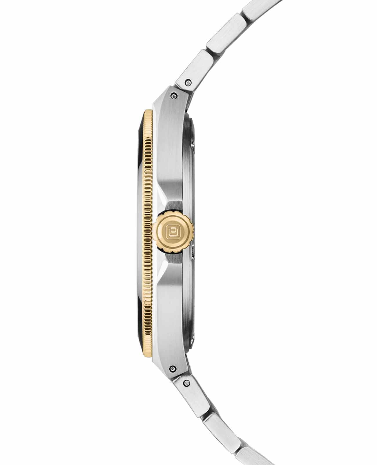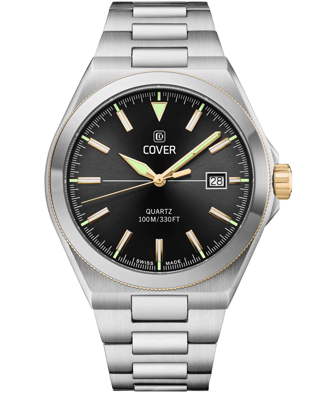 Cover CO213.03 – элегантные мужские часы, сочетающие классический дизайн и современные технологии. Корпус диаметром 41 мм выполнен из нержавеющей стали 316L, а безельБезельВнешний ободок, закрепляющий стекло. В спортивных часах так называется поворотное кольцо с делениями на циферблате, выполняет роль таймера – замеряет отрезки времени на шкале. Неподвижный безель – элемент декора. Однонаправленно вращающийся безель на дайверских часах позволяет фиксировать моменты погружения и выныривания на поверхность. с частичным золотистым IP-покрытиемIP-покрытиеМетод ионного напыления. Демонстрирует повышенную устойчивость к истиранию, окислению и химическим веществам. Под воздействием высокого давления и температуры около 1500°C молекулы металла надёжно соединяются с частицами корпуса часов., что обеспечивает прочность и долговечность. Циферблат с чёткими часовыми метками и стрелками, покрытыми люминесцентным покрытиемЛюминесцентное покрытиеПозволяет считывать показания времени в темноте. Производители наносят на стрелки, часовые индексы, безель или поверхность циферблата светонакопительный состав, дающий холодное свечение., гарантирует отличную читаемость в любых условиях, а его поверхность защищена сапфировым стекломСапфировое стеклоПрочный и надёжный материал из кристалла сапфира синтетического происхождения, характеризующийся особой твёрдостью и устойчивостью к царапинам и повреждениям., устойчивым к царапинам. Часы оснащены швейцарским кварцевым механизмом, обеспечивающим точный ход и надёжность. Браслет из нержавеющей стали оснащён раскладной застёжкойРаскладная застёжкаТакой тип застёжки используется только на браслетах из металла. Она никогда не раскрывается полностью, происходит разделение на 2 и более частей. Раскладывающая застёжка снизит вероятность потери часов к минимуму., обеспечивающей удобную и надёжную фиксацию на запястье. Водонепроницаемость до 100 метров, позволит плавать, нырять и заниматься другими водными видами спорта.
