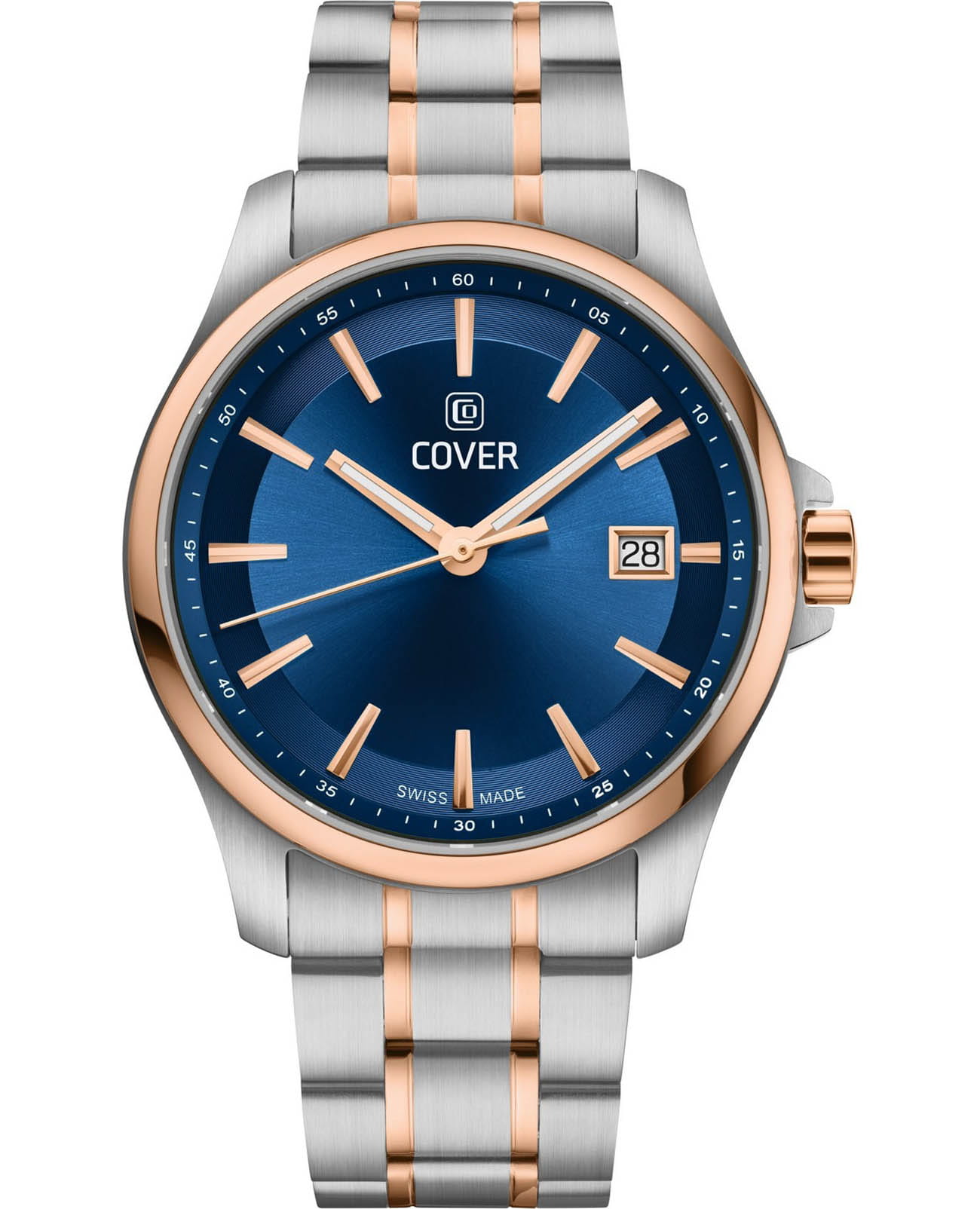 Cover CO214.09 из коллекции Marville – элегантные мужские часы, сочетающие классический дизайн и современные технологии. Корпус диаметром 39 мм выполнен из нержавеющей стали, что обеспечивает прочность и долговечность. Синий циферблат с чёткими часовыми метками и стрелками, покрытыми люминесцентным покрытиемЛюминесцентное покрытиеПозволяет считывать показания времени в темноте. Производители наносят на стрелки, часовые индексы, безель или поверхность циферблата светонакопительный состав, дающий холодное свечение., гарантирует отличную читаемость в любых условиях, а его поверхность защищена сапфировым стекломСапфировое стеклоПрочный и надёжный материал из кристалла сапфира синтетического происхождения, характеризующийся особой твёрдостью и устойчивостью к царапинам и повреждениям., устойчивым к царапинам. Часы оснащены швейцарским кварцевым механизмом, обеспечивающим точный ход и надёжность. Браслет и безельБезельВнешний ободок, закрепляющий стекло. В спортивных часах так называется поворотное кольцо с делениями на циферблате, выполняет роль таймера – замеряет отрезки времени на шкале. Неподвижный безель – элемент декора. Однонаправленно вращающийся безель на дайверских часах позволяет фиксировать моменты погружения и выныривания на поверхность. изготовлены из нержавеющей стали с PVDPVDУльтратонкое покрытие наносится в технике вакуумного напыления, сочетает в себе нитрид титана особой прочности со слоем золота или оксида хрома. Несёт в себе декоративную или защитную функцию., браслет также оснащён раскладной застёжкойРаскладная застёжкаТакой тип застёжки используется только на браслетах из металла. Она никогда не раскрывается полностью, происходит разделение на 2 и более частей. Раскладывающая застёжка снизит вероятность потери часов к минимуму., обеспечивающей удобную и надёжную фиксацию на запястье. Водонепроницаемость до 100 метров, позволит плавать, нырять и заниматься другими водными видами спорта.