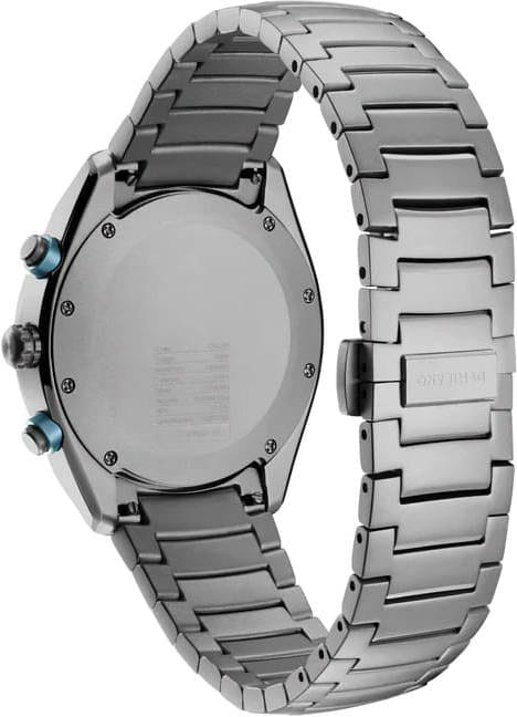 Элегантный хронограф D1 Milano Cronografo Essential Black CHBJ21 - идеальное воплощение мужественности и стиля. Этот многофункциональный аксессуар оснащен секундомером, тахиметромТахиметрРазмеченная шкала, располагается на ободке или безеле часов. Тахиметр позволяет рассчитать скорость на определённом участке пути, расстояние измеряется в километрах или милях.. что делает его незаменимым компаньоном в повседневной жизни. Изысканный корпус и браслет выполнены из стали с PVD-покрытиемPVDУльтратонкое покрытие наносится в технике вакуумного напыления, сочетает в себе нитрид титана особой прочности со слоем золота или оксида хрома. Несёт в себе декоративную или защитную функцию.. Неподвижный безельБезельВнешний ободок, закрепляющий стекло. В спортивных часах так называется поворотное кольцо с делениями на циферблате, выполняет роль таймера – замеряет отрезки времени на шкале. Неподвижный безель – элемент декора. Однонаправленно вращающийся безель на дайверских часах позволяет фиксировать моменты погружения и выныривания на поверхность. из нержавеющей стали с PVD-покрытиемPVDУльтратонкое покрытие наносится в технике вакуумного напыления, сочетает в себе нитрид титана особой прочности со слоем золота или оксида хрома. Несёт в себе декоративную или защитную функцию.. Минималистичный дизайн циферблата, защищенный прочным сапфировым стекломСапфировое стеклоПрочный и надёжный материал из кристалла сапфира синтетического происхождения, характеризующийся особой твёрдостью и устойчивостью к царапинам и повреждениям. с антибликовым покрытиемАнтибликовое покрытиеСлой оксида металла в 0,13-0,3 микрон, благодаря которому стекло часов не бликует и не отражает свет. Антибликовое покрытие уменьшает отражение света в 10 раз, обеспечивая отличную читаемость показателей циферблата., привлекает внимание своей сдержанной красотой. Стрелки с люминесцентным покрытиемЛюминесцентное покрытиеПозволяет считывать показания времени в темноте. Производители наносят на стрелки, часовые индексы, безель или поверхность циферблата светонакопительный состав, дающий холодное свечение., обеспечивающим хорошую читаемость в темноте. Надежная конструкция с задней крышкой на 8 винтах и стильный браслет с удобной застёжкой «бабочка» с кнопкамиЗастёжка "бабочка"Такой вид застёжки дополняется предохранителями, помогающими избежать случайного раскрытия браслета. Обладают изящным исполнением. обеспечивают комфорт при ношении. Водозащита 50 метров защищает часы от брызг и дождя, делая их подходящими для повседневного использования. Это не просто часы, а статусный аксессуар, подчеркивающий безупречный вкус и внимание к деталям своего владельца.