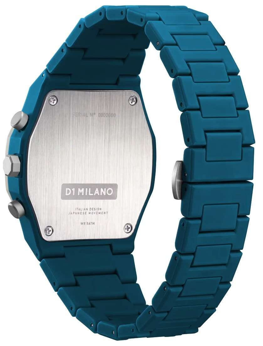Часы D1 Milano PHBJ06 — это элегантные кварцевые часы, которые впечатляют своим функциональным дизайном, подходят как для мужчин, так и для женщин. Их высокая надежность превращает эти часы в незаменимый аксессуар на каждый день. ХронографХронографФункция позволяет измерять отрезки времени с особой точностью: часы, минуты, секунды. Верным признаком хронографа является наличие на циферблате 3 дополнительных окошек-счётчиков. оснащен секундомеромСекундомерСекундоме́р — прибор, способный измерять интервалы времени с точностью до долей секунды. и синим циферблатом, защищенным минеральным стекломМинеральное стеклоМинеральное стекло представляет собой искусственно выращенный минерал кварца. Такое стекло отличается особой устойчивостью к повреждениям и царапинам. Уступает по некоторым качествам сапфировому стеклу.. На циферблате расположены накладные метки в виде штрихов и три дополнительных циферблата серого цвета с серебристыми стрелками, а также окошко календаря в районе отметки 6 часов. Пластиковый серый безельБезельВнешний ободок, закрепляющий стекло. В спортивных часах так называется поворотное кольцо с делениями на циферблате, выполняет роль таймера – замеряет отрезки времени на шкале. Неподвижный безель – элемент декора. Однонаправленно вращающийся безель на дайверских часах позволяет фиксировать моменты погружения и выныривания на поверхность. отлично сочетается с синим пластиковым браслетом, застежкой «бабочка»Застёжка "бабочка"Такой вид застёжки дополняется предохранителями, помогающими избежать случайного раскрытия браслета. Обладают изящным исполнением. . Стальная задняя крышка этих часов крепится на 4-х винтах. Водонепроницаемость до 50 метров делает эти часы идеальным выбором для повседневного использования.