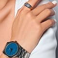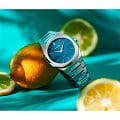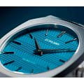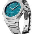 Наручные часы D1 Milano UTBU04 сочетают в себе современный дизайн и надежность технологий. Модель обладает круглым корпусом диаметром 38 мм, изготовленным из нержавеющей стали, что обеспечивает устойчивость к внешним воздействиям. Циферблат бирюзового цвета, вдохновленный кристально чистыми водами острова Панарея, украшен минималистичными метками в виде штрихов, создавая элегантный и запоминающийся образ. Защиту циферблата обеспечивает прочное сапфировое стеклоСапфировое стеклоПрочный и надёжный материал из кристалла сапфира синтетического происхождения, характеризующийся особой твёрдостью и устойчивостью к царапинам и повреждениям., известное своей устойчивостью к царапинам и высокой прозрачностью. Часы оснащены кварцевым механизмом, гарантирующим точность хода без необходимости подзаводки. Браслет выполнен из нержавеющей стали на раскладной застёжкеРаскладная застёжкаТакой тип застёжки используется только на браслетах из металла. Она никогда не раскрывается полностью, происходит разделение на 2 и более частей. Раскладывающая застёжка снизит вероятность потери часов к минимуму., что обеспечивает комфортное ношение на протяжении всего дня. Водонепроницаемость модели составляет 50 метров, что позволяет использовать часы в повседневной жизни, включая контакт с водой при мытье рук или дожде, однако не рекомендуется для погружений или активных водных видов спорта. Изготовленные в Италии, эти ультратонкие часы станут стильным аксессуаром, идеально дополняющим как деловой, так и casual-образ.