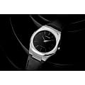 Мужские наручные часы из коллекции Ultra Thin сочетают в себе современный дизайн и надежность технологий. Модель обладает круглым корпусом диаметром 40 мм, выполненным из высококачественной нержавеющей стали. Толщина корпуса составляет всего 6 мм, что делает часы ультратонкими и идеально подходящими для повседневного использования. Циферблат черного цвета украшен индексами и стрелками серебристого оттенка, создавая элегантный и лаконичный образ. Защиту циферблата обеспечивает сапфировое стеклоСапфировое стеклоПрочный и надёжный материал из кристалла сапфира синтетического происхождения, характеризующийся особой твёрдостью и устойчивостью к царапинам и повреждениям. с антибликовым покрытиемАнтибликовое покрытиеСлой оксида металла в 0,13-0,3 микрон, благодаря которому стекло часов не бликует и не отражает свет. Антибликовое покрытие уменьшает отражение света в 10 раз, обеспечивая отличную читаемость показателей циферблата., известное своей устойчивостью к царапинам и высокой прозрачностью. Часы оснащены кварцевым механизмом, гарантирующим точность хода без необходимости подзаводки. Ремешок выполнен из натуральной кожи, что обеспечивает комфортное ношение на протяжении всего дня. Водонепроницаемость модели составляет 5 атмосфер (50 метров), что позволяет использовать часы в повседневной жизни, включая контакт с водой при мытье рук или дожде, однако не рекомендуется для погружений или активных водных видов спорта. Изготовленные в Италии, эти часы станут стильным аксессуаром, идеально дополняющим как деловой, так и casual-образ.