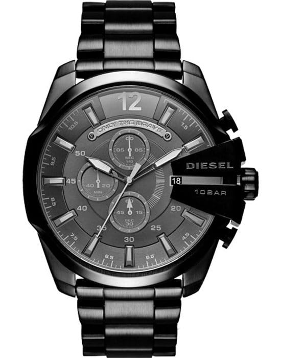 Мужские часы Diesel DZ4355 из коллекции Mega Chief Chronograph представляют собой спортивный хронографХронографФункция позволяет измерять отрезки времени с особой точностью: часы, минуты, секунды. Верным признаком хронографа является наличие на циферблате 3 дополнительных окошек-счётчиков. для дополнения повседневного образа.