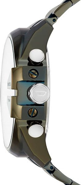Оригинальный дизайн напоминает об автомобилях из фантастических книг, уникальный внешний вид модели позволит вам становиться центром любой компании. Высокая точность хода обеспечивается кварцевым механизмом, который надёжно защищён корпусом из нержавеющей стали 316L. Минеральное стекло препятствует образованию царапин. Водонепроницаемость до 10 бар. Заводная головка с защитой. PVD-покрытиеPVDУльтратонкое покрытие наносится в технике вакуумного напыления, сочетает в себе нитрид титана особой прочности со слоем золота или оксида хрома. Несёт в себе декоративную или защитную функцию. тёмно-зелёной расцветки. ХронографХронографФункция позволяет измерять отрезки времени с особой точностью: часы, минуты, секунды. Верным признаком хронографа является наличие на циферблате 3 дополнительных окошек-счётчиков., секундомер, окошко даты. Габариты: 55 x 51 x 14 мм.