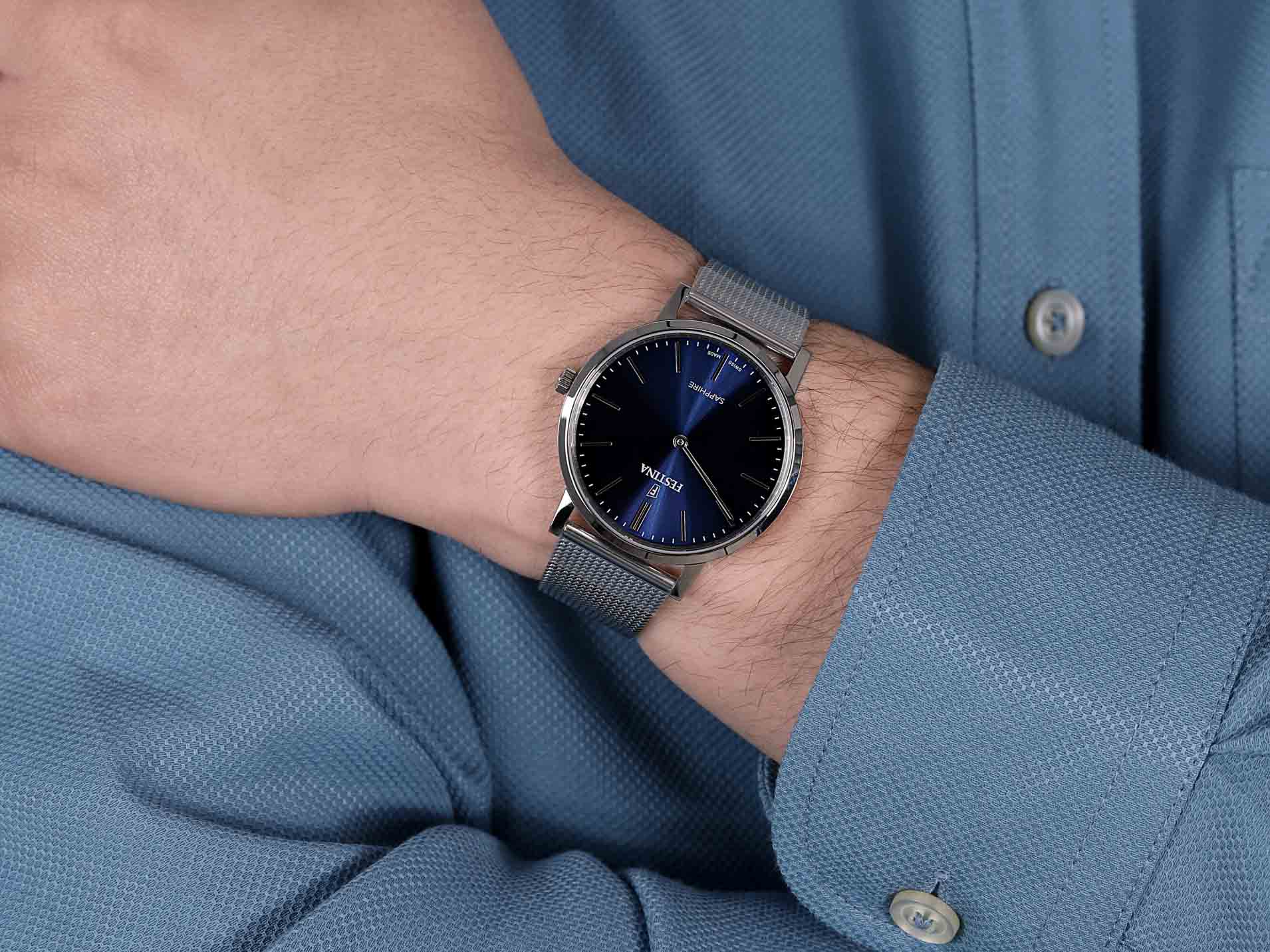 Яркий стиль и функциональность этих часов придутся по душе каждому. Циферблат защищен сапфировым стекломСапфировое стеклоПрочный и надёжный материал из кристалла сапфира синтетического происхождения, характеризующийся особой твёрдостью и устойчивостью к царапинам и повреждениям., устойчивым к появлению царапин и обладающим высокой прозрачностью. Кварцевый механизм с высокой точностью. Класс водозащиты: 50 метров, позволит защитить корпус от капель дождя. Корпус часов изготовлен из нержавеющей стали. Удобный и надежный стальной браслет миланского плетения с регулируемой застежкой.