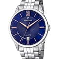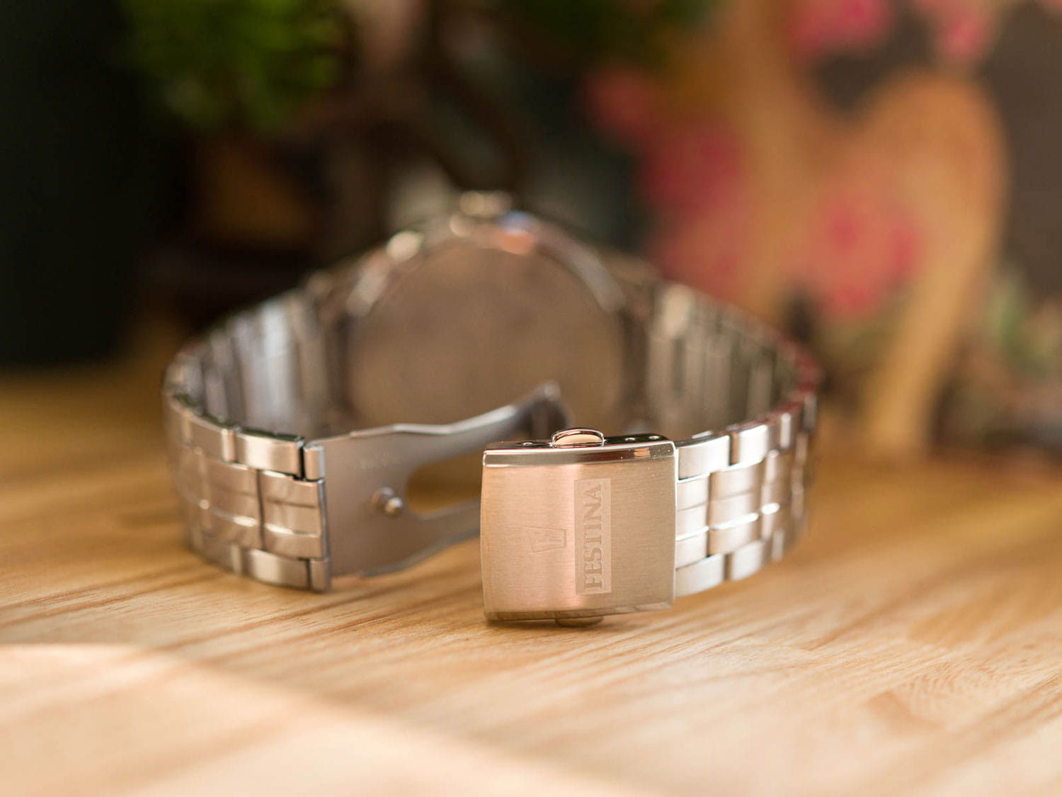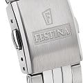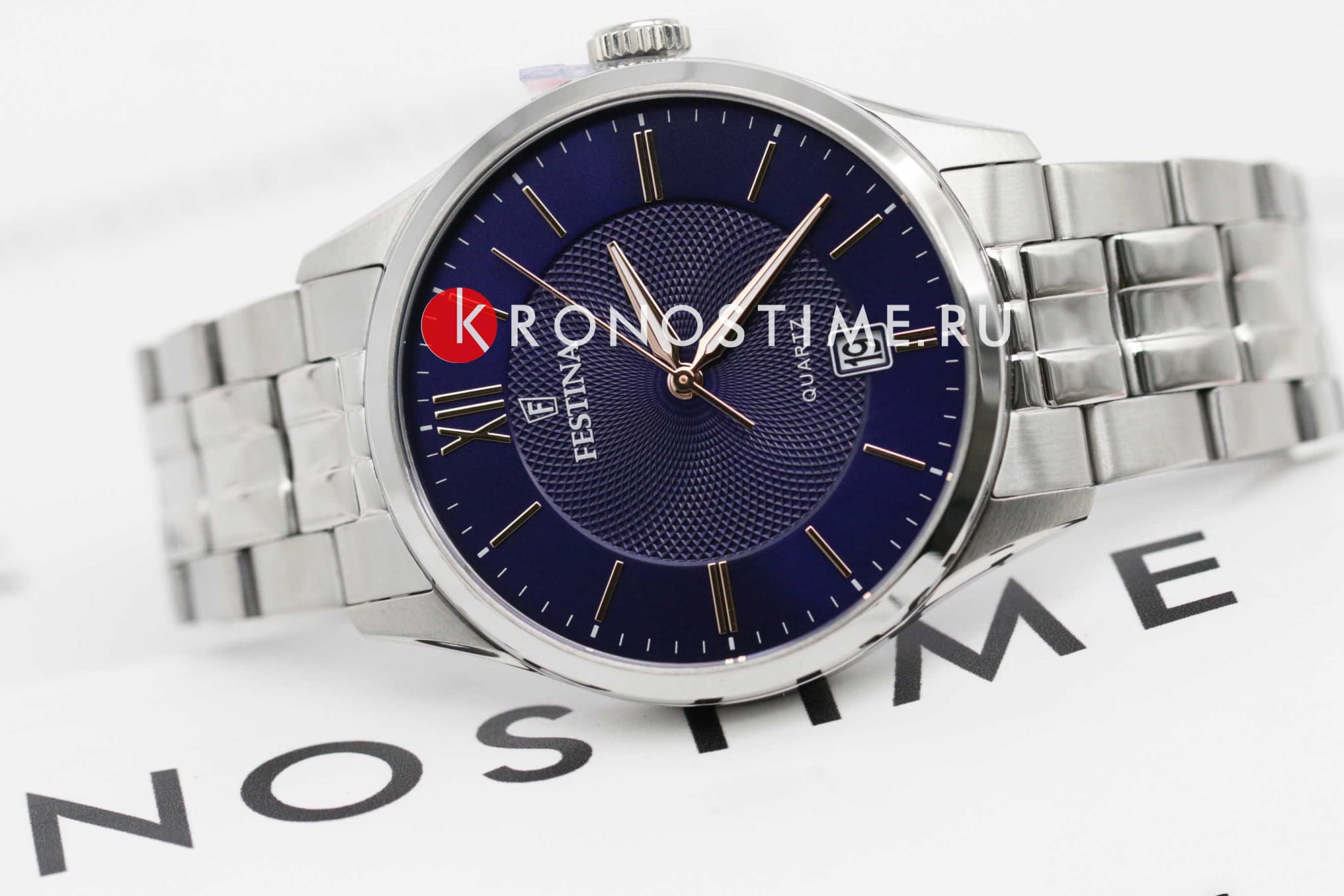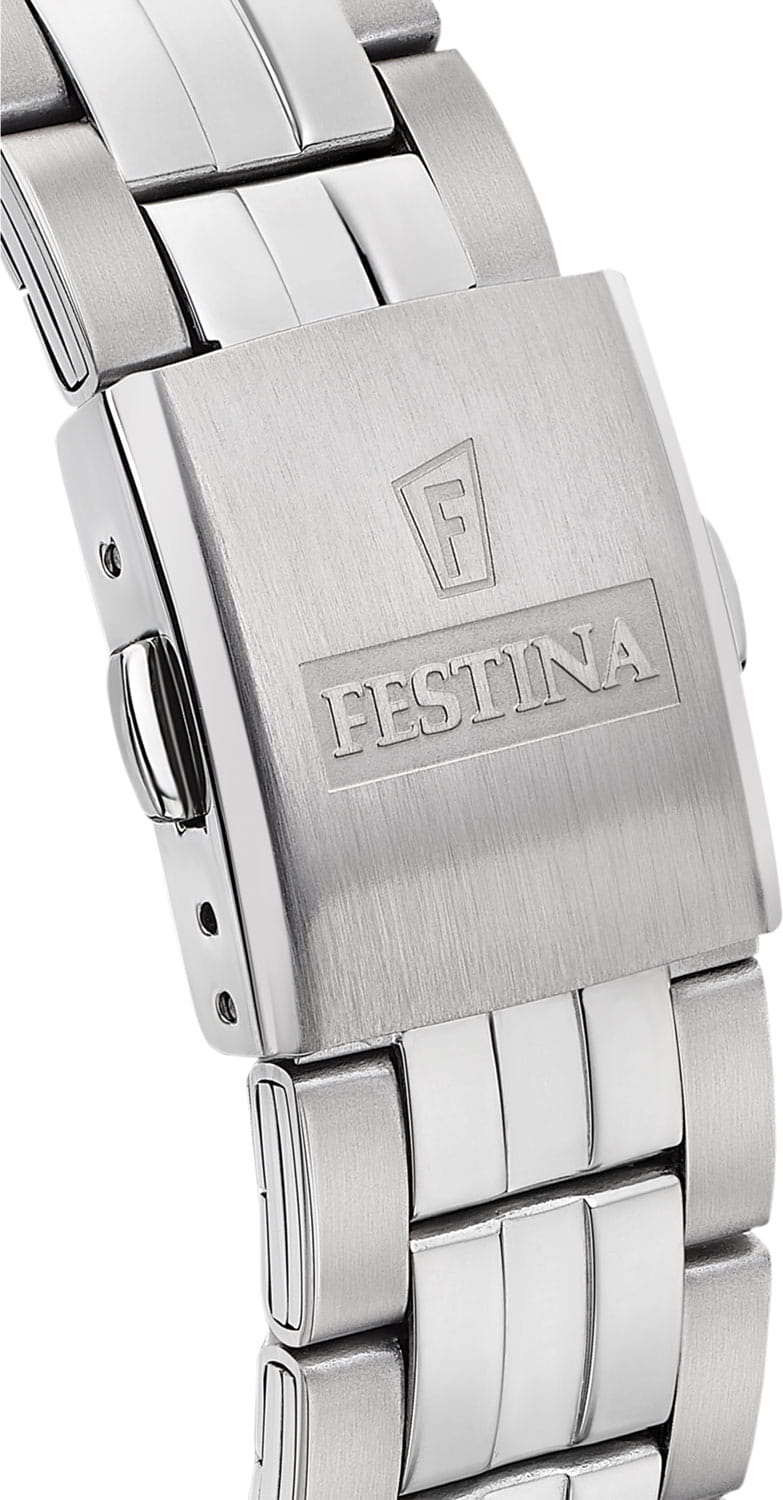 Наручные мужские часы c сатинированной поверхностью Festina Acero Clasico F20425/5, кварцевый механизм с высокой точностью. Минеральное стеклоМинеральное стеклоМинеральное стекло представляет собой искусственно выращенный минерал кварца. Такое стекло отличается особой устойчивостью к повреждениям и царапинам. Уступает по некоторым качествам сапфировому стеклу. устойчивое к мелким механическим повреждениям. Класс водозащиты: 50 метров, позволит защитить корпус от случайных брызг или капель дождя. Корпус часов изготовлен из стали. Стальной браслет на раскладной застёжкеРаскладная застёжкаТакой тип застёжки используется только на браслетах из металла. Она никогда не раскрывается полностью, происходит разделение на 2 и более частей. Раскладывающая застёжка снизит вероятность потери часов к минимуму.. Стрелки с люминесцентным покрытиемЛюминесцентное покрытиеПозволяет считывать показания времени в темноте. Производители наносят на стрелки, часовые индексы, безель или поверхность циферблата светонакопительный состав, дающий холодное свечение.. Циферблат украшен гильоше. Острые стрелки в стиле Alpha. Метки в виде штрихов, 12-ти часовая метка в виде римской цифры. Окошко даты находится в положении 6 часов. Рифленая заводная головка.