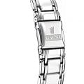 Яркий стиль и функциональность этих часов придутся по душе активной девушке. Кварцевый механизм с высокой точностью. Минеральное стеклоМинеральное стеклоМинеральное стекло представляет собой искусственно выращенный минерал кварца. Такое стекло отличается особой устойчивостью к повреждениям и царапинам. Уступает по некоторым качествам сапфировому стеклу. устойчивое к появлению царапин, обладающее высокой прозрачностью. Керамический неподвижный безельБезельВнешний ободок, закрепляющий стекло. В спортивных часах так называется поворотное кольцо с делениями на циферблате, выполняет роль таймера – замеряет отрезки времени на шкале. Неподвижный безель – элемент декора. Однонаправленно вращающийся безель на дайверских часах позволяет фиксировать моменты погружения и выныривания на поверхность.. Циферблат украшен кристаллами. Класс водозащиты: 50 метров, позволит защитить корпус от случайных брызг или капель дождя. Корпус часов изготовлен из нержавеющей стали. Браслет с керамическими вставками и с раскладной застёжкойРаскладная застёжкаТакой тип застёжки используется только на браслетах из металла. Она никогда не раскрывается полностью, происходит разделение на 2 и более частей. Раскладывающая застёжка снизит вероятность потери часов к минимуму..