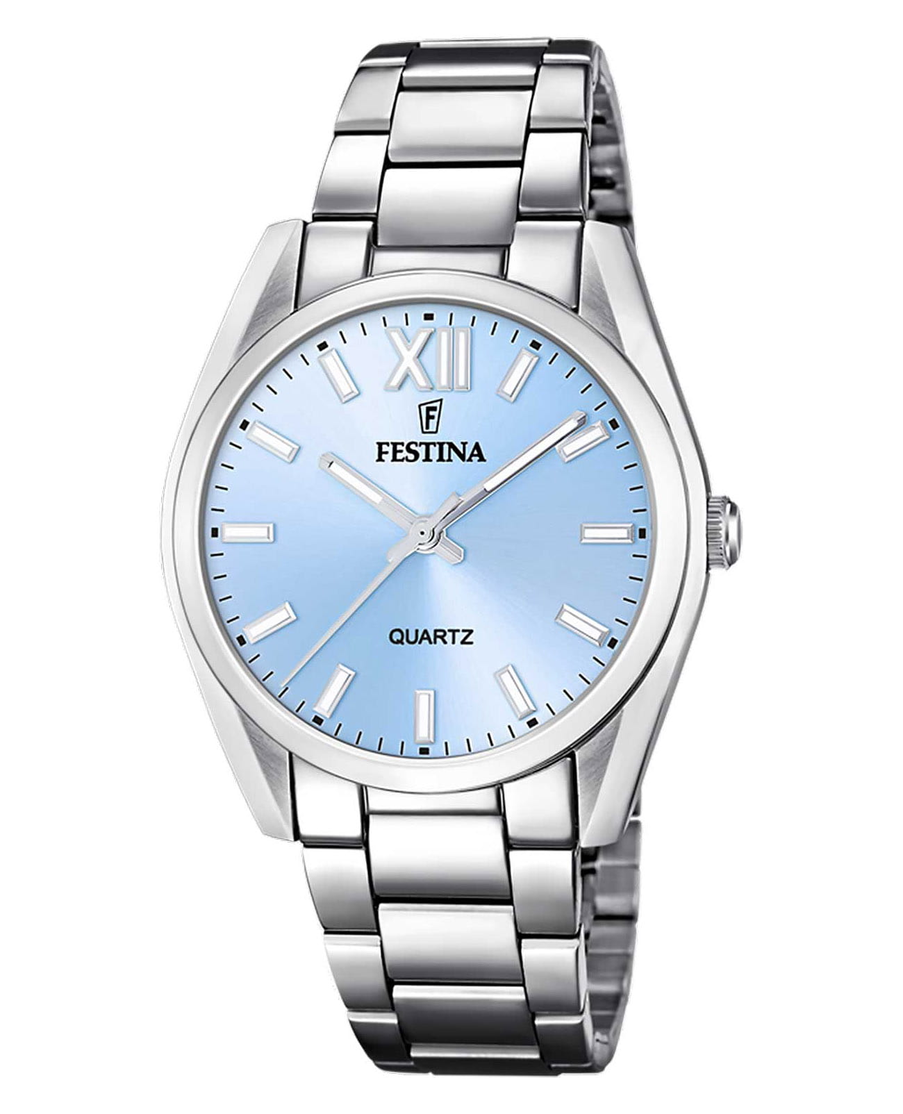 Наручные женские часы Festina Alegria F20622/3 с минеральным стекломМинеральное стеклоМинеральное стекло представляет собой искусственно выращенный минерал кварца. Такое стекло отличается особой устойчивостью к повреждениям и царапинам. Уступает по некоторым качествам сапфировому стеклу., кварцевый механизм с высокой точностью. "" устойчивое к потертостям. Класс водозащиты: 50 метров, позволит защитить корпус от случайных брызг или капель дождя. Корпус и браслет часов изготовлены из стали,серебристого цвета. Браслет на раскладной застёжкеРаскладная застёжкаТакой тип застёжки используется только на браслетах из металла. Она никогда не раскрывается полностью, происходит разделение на 2 и более частей. Раскладывающая застёжка снизит вероятность потери часов к минимуму..