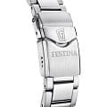Мужские часы Festina The originals F20663/4, кварцевый механизм с высокой точностью. Сапфировое стеклоСапфировое стеклоПрочный и надёжный материал из кристалла сапфира синтетического происхождения, характеризующийся особой твёрдостью и устойчивостью к царапинам и повреждениям. устойчивое к появлению царапин, обладающее высокой прозрачностью. Класс водозащиты: 200 метров, позволит плавать, нырять и заниматься другими водными видами спорта. Корпус часов изготовлен из нержавеющей стали. Стальной браслет на раскладной застёжкеРаскладная застёжкаТакой тип застёжки используется только на браслетах из металла. Она никогда не раскрывается полностью, происходит разделение на 2 и более частей. Раскладывающая застёжка снизит вероятность потери часов к минимуму.. Окошко даты находится в положении 3 часа. Вращающийся стальной безельБезельВнешний ободок, закрепляющий стекло. В спортивных часах так называется поворотное кольцо с делениями на циферблате, выполняет роль таймера – замеряет отрезки времени на шкале. Неподвижный безель – элемент декора. Однонаправленно вращающийся безель на дайверских часах позволяет фиксировать моменты погружения и выныривания на поверхность. с IP-покрытиемIP-покрытиеМетод ионного напыления. Демонстрирует повышенную устойчивость к истиранию, окислению и химическим веществам. Под воздействием высокого давления и температуры около 1500°C молекулы металла надёжно соединяются с частицами корпуса часов.. Стрелки и метки с люминесцентным покрытиемЛюминесцентное покрытиеПозволяет считывать показания времени в темноте. Производители наносят на стрелки, часовые индексы, безель или поверхность циферблата светонакопительный состав, дающий холодное свечение..